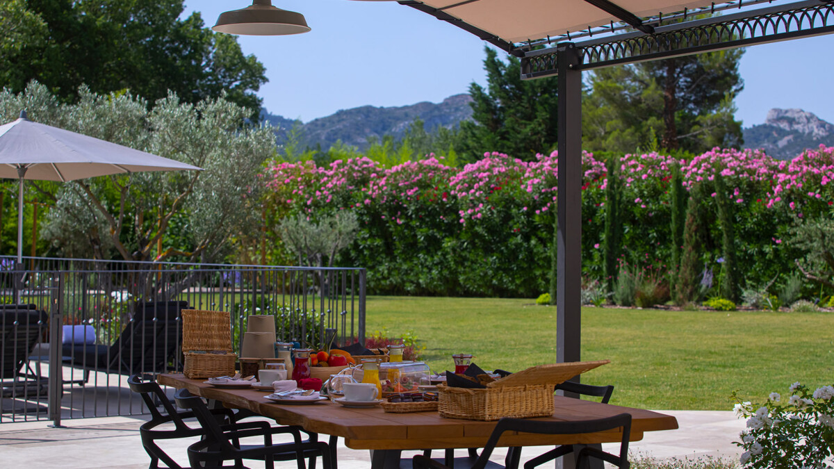 Les terrasses aménagées permettent quant à elles de vivre pleinement le climat privilégié de la Provence, que ce soit pour des déjeuners en plein air ou des soirées étoilées.