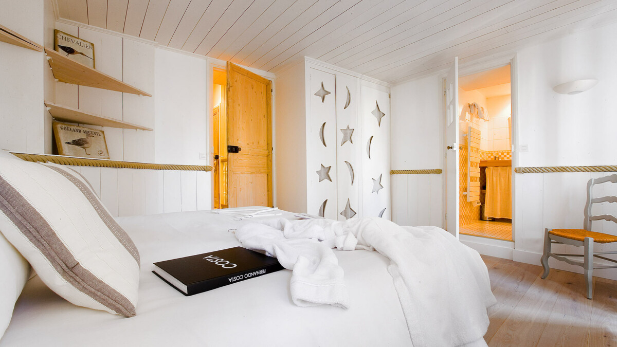 The interior of the house is a clever blend of old-world charm and modernity. The living room, with its welcoming fireplace, becomes the centre of your winter evenings, where board games and long discussions are held around a crackling fire. The fully-equipped kitchen, the heart of the house, invites you to prepare convivial meals. The large dining room table is perfect for lively dinners where everyone can share the day’s adventures.