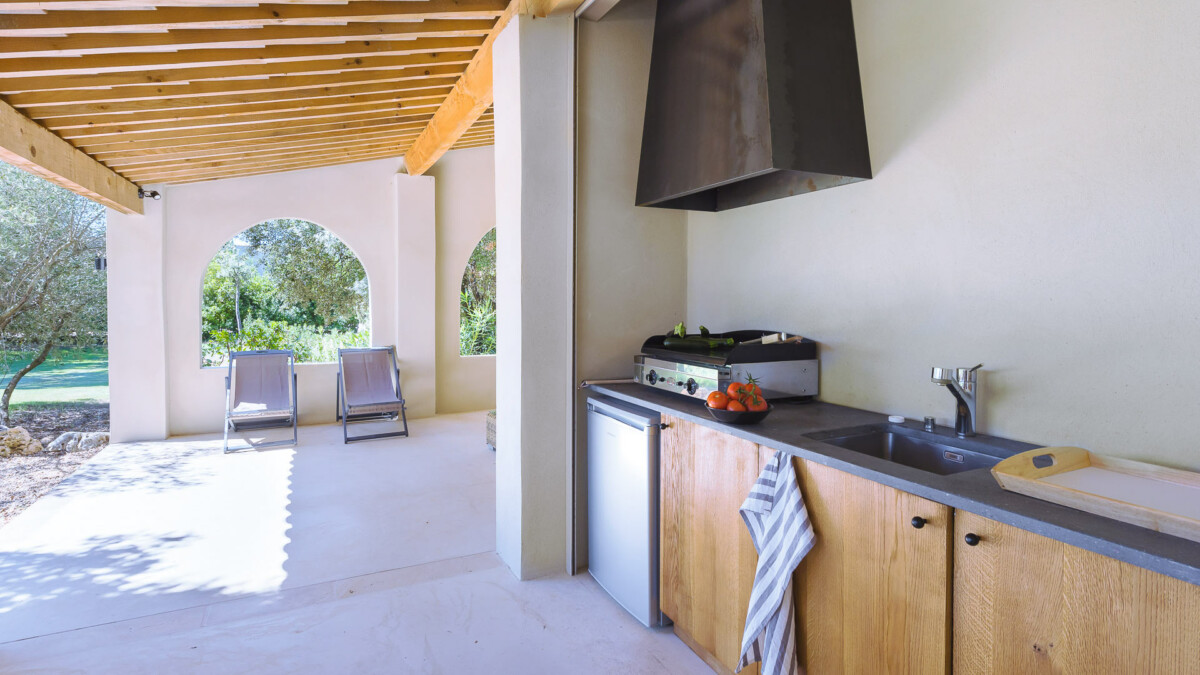 In the garden you will find sun loungers in the sun or you can lounge in the shade of the pool-house. Enjoy the vast covered summer kitchen, with plancha, refrigerator and plenty of storage, as well as a shower and a toilet.