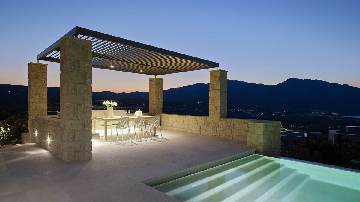 La Villa Creta Anasa, est la villa jumelle de la villa Oneiro mais plus grande, elle possède 2 étages, deux chambres avec une spacieuse terrasse en pierre naturelle à l’avant et sur les côtés de la propriété. Elle dispose d’une piscine à débordement privée où vous pourrez profiter de vues captivantes de la péninsule de Gramvousa et Kissamos Bay.