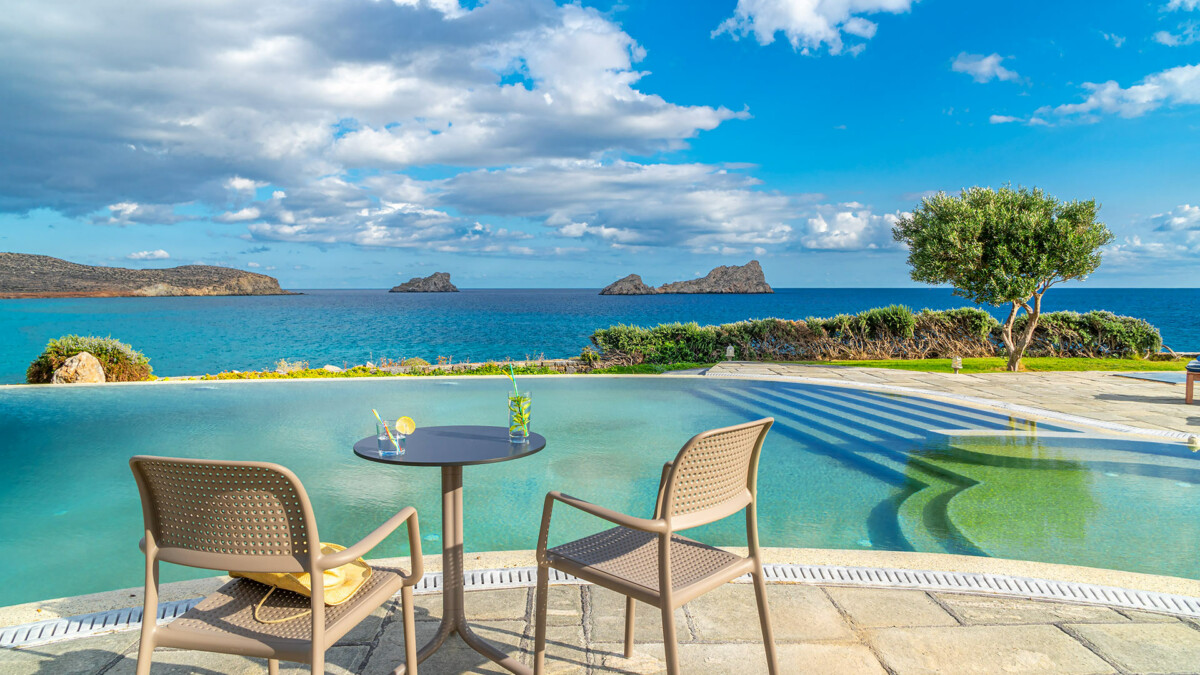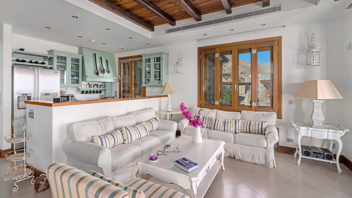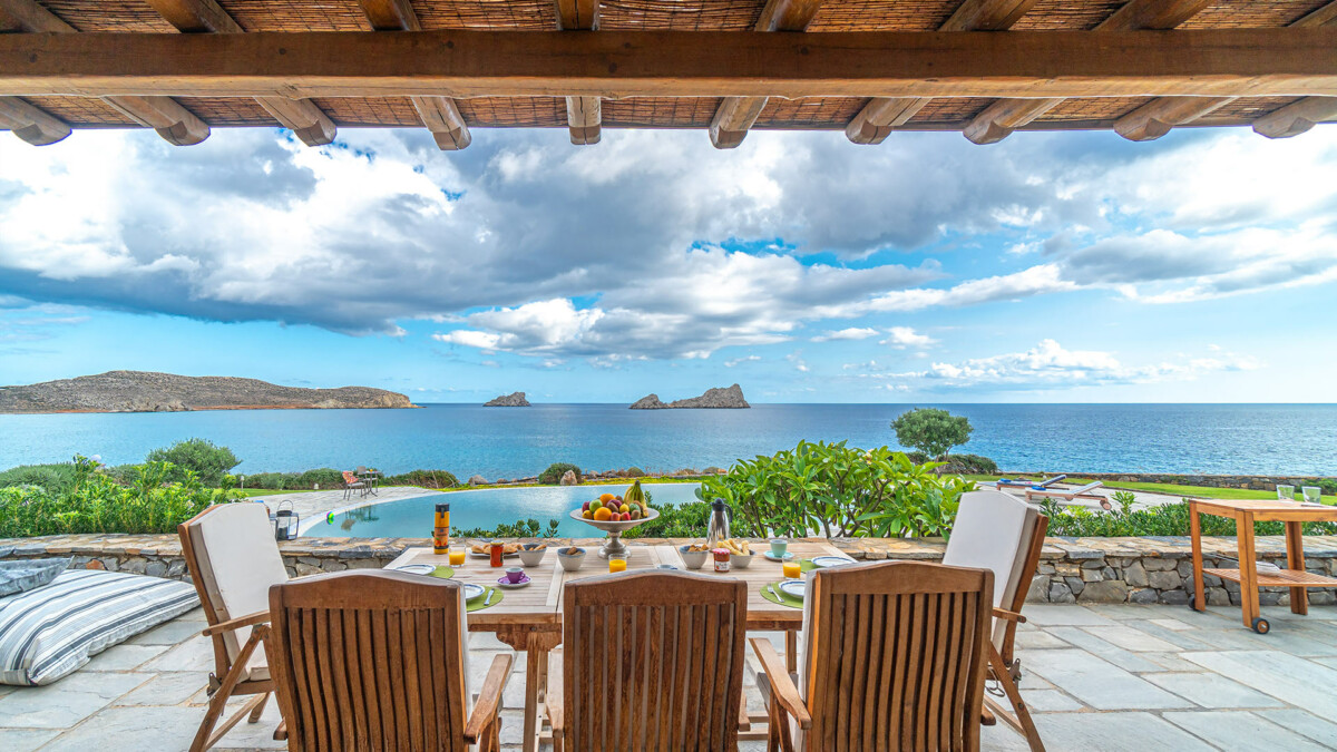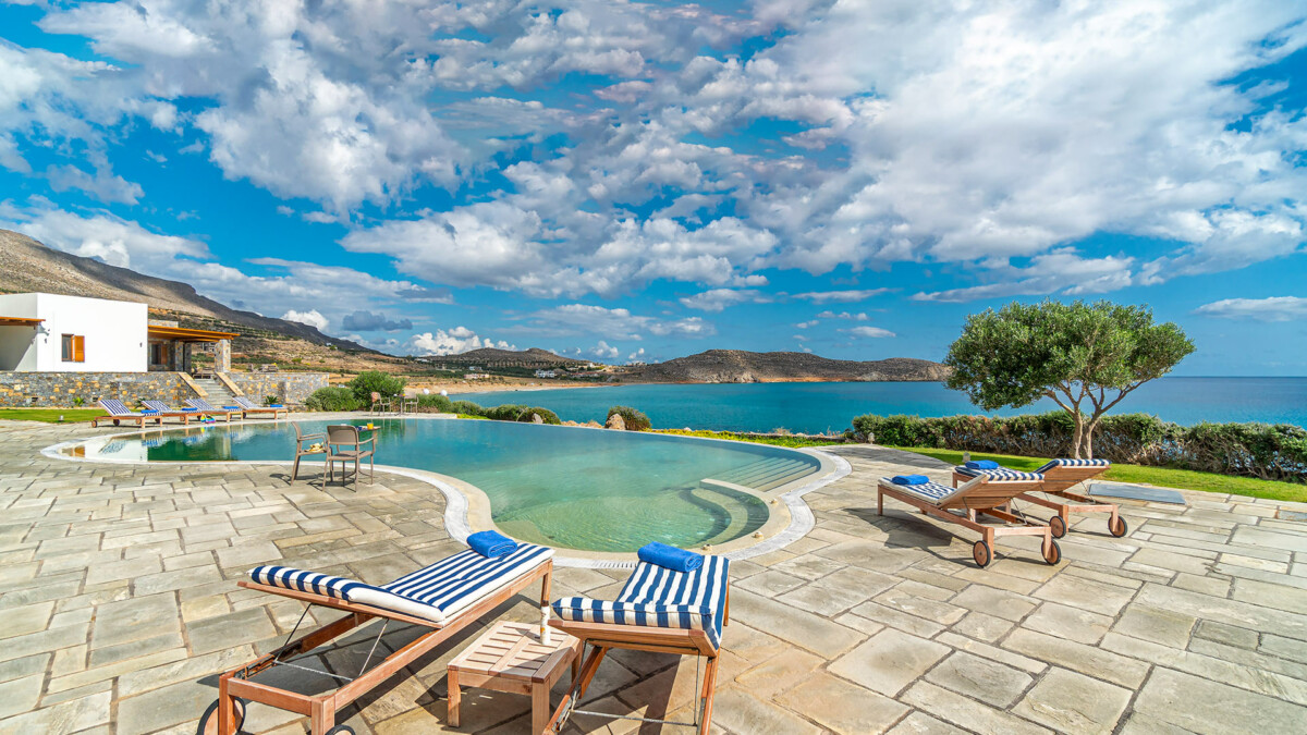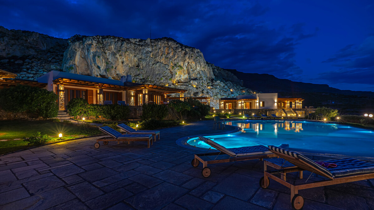Villa moderne avec 6 chambres doubles et 6 salles de bains située dans une zone très privée avec vue sur la mer et les grottes à Sitia, Crète.