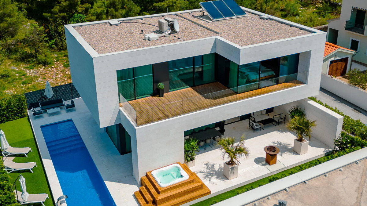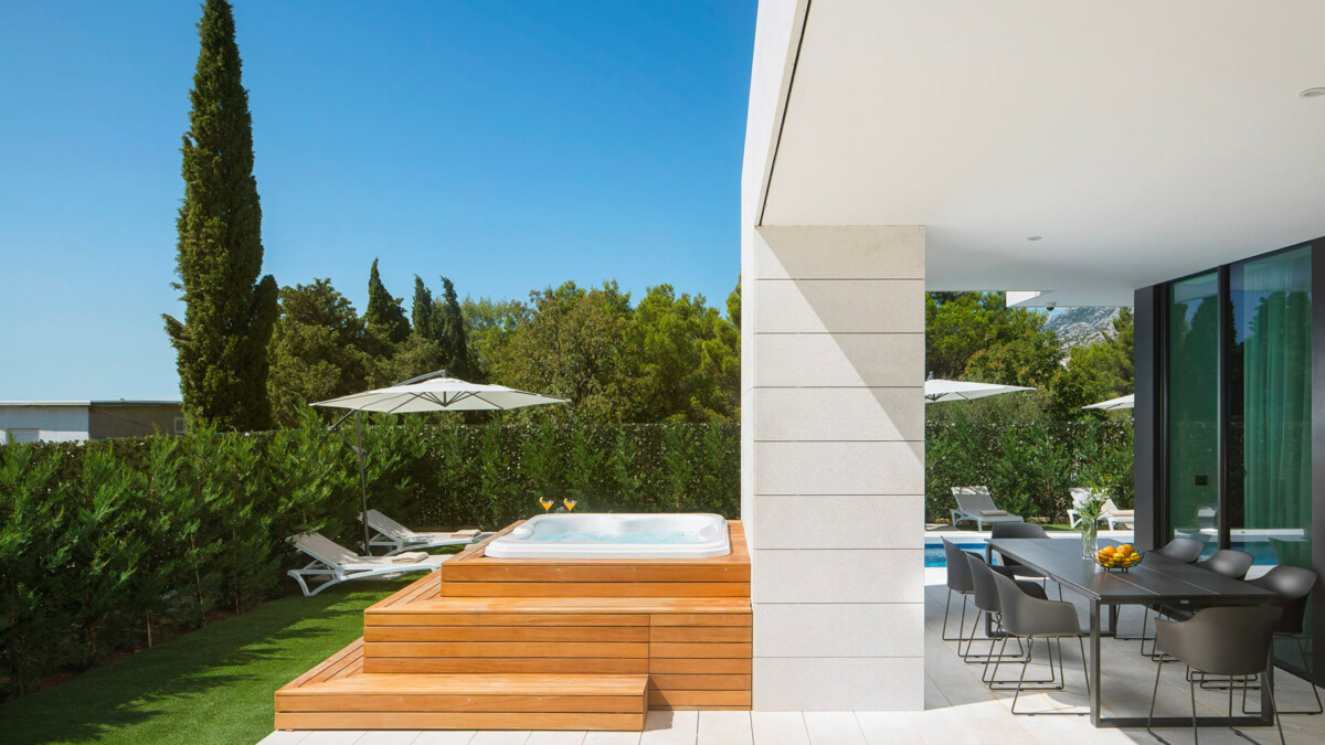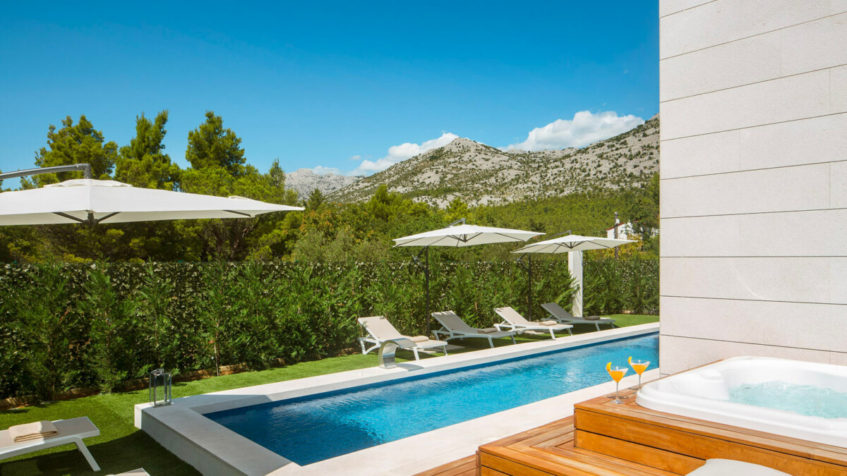 Avec ses 4 chambres et 5 salles de bains, la villa Danijel peut accueillir 8 personnes et les intérieurs sont dotés d’équipements de haut-standing. La maison dispose par exemple d’une cuisine contemporaine entièrement équipée, d’un salon spacieux et de la climatisation.