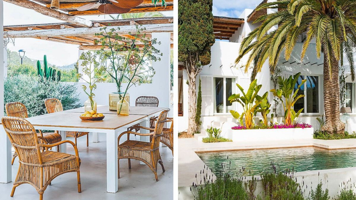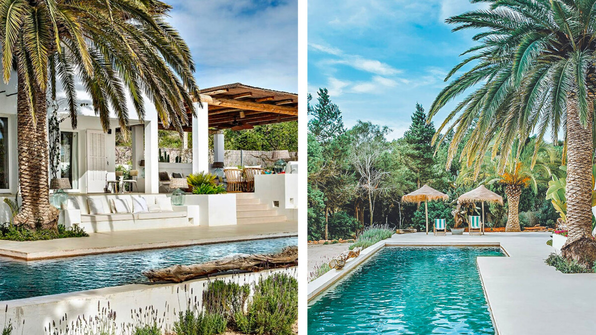 Encadrée par son jardin luxuriant, la belle piscine entourée de palmiers et de chaises longues invitent au repos absolu. Les terrasses couvertes offrent des espaces magnifiques pour se détendre à l’ombre, en se laissant bercer par la brise ibizienne.