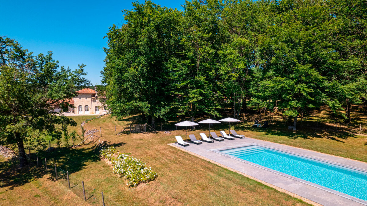 La villa est située sur un terrain de 2000 m² semi clos, isolée entre pré et bois. Vous pourrez profiter de sa piscine privée chauffée de 10m x 5m en toute liberté et en toute intimité. La piscine est sécurisée par un volet roulant aux normes CE et une clôture d’agrément, vous disposez de bain de soleil et de parasol, des WC et une douche sont dédiés à l’espace piscine.