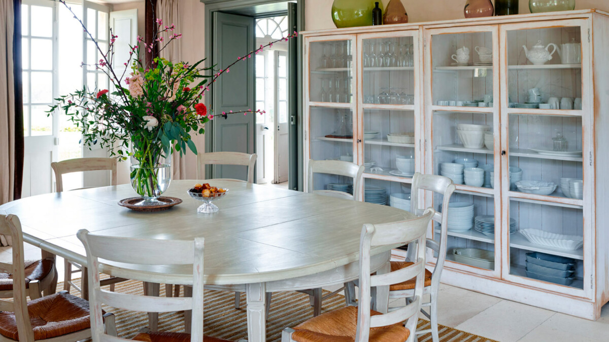 - La salle à manger, ouverte sur la cuisine avec une grande table carrée pouvant accueillir jusqu’à 12 personnes, dans le vaisselier vous disposerez de tout le nécessaire pour vos repas.