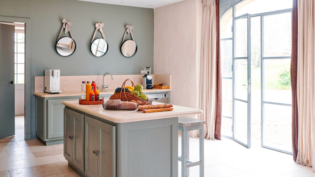- La cuisine : lumineuse avec une grande porte vitrée qui donne accès à la terrasse. Elle dispose de deux plans de travail et un ilot central en pierre de la région. La cuisine est entièrement équipée avec lave-vaisselle, frigo et congélateur, électroménager pour le petit déjeuner (grille pain, bouilloire, micro-onde, cafetière à dosette…), une cuisinière Smeg avec 5 feux à gaz et four électrique, vous disposez également d’un Thermomix TM31, d’une plancha électrique, d’un extracteur de jus …