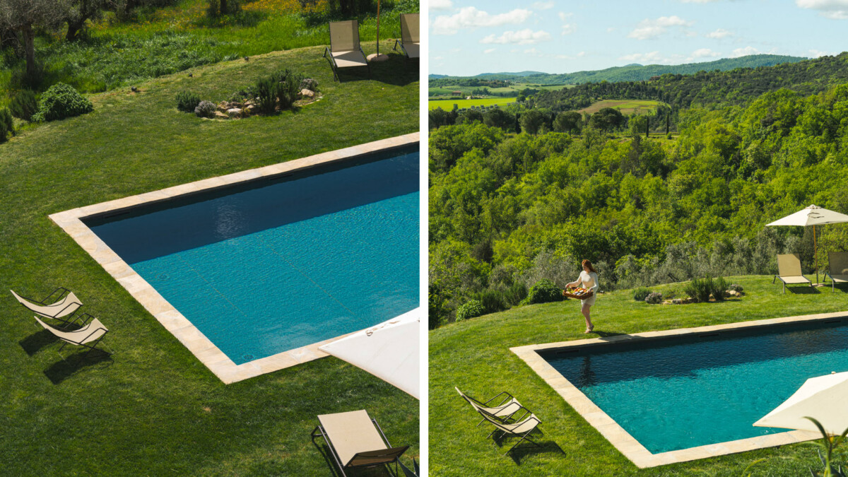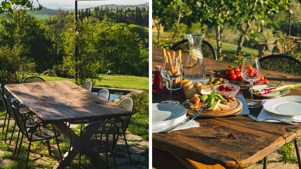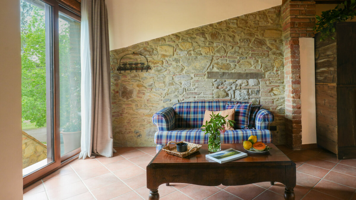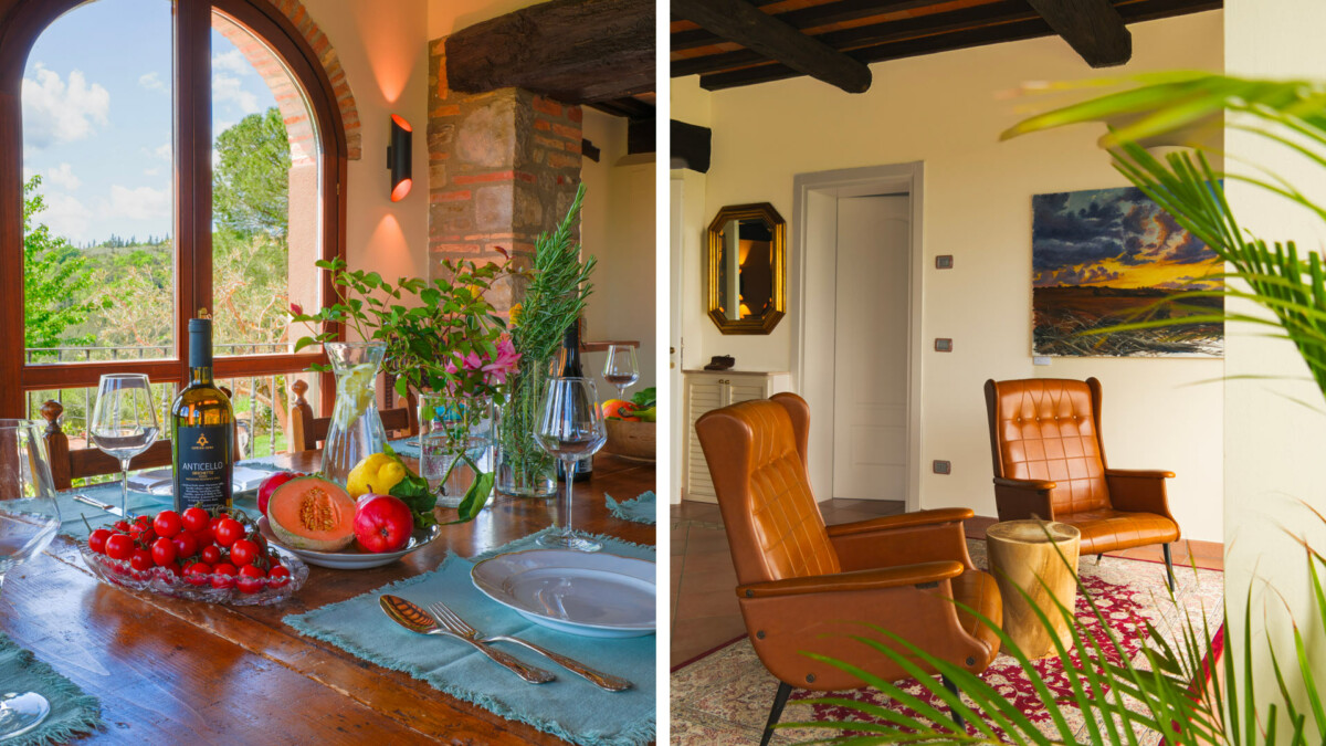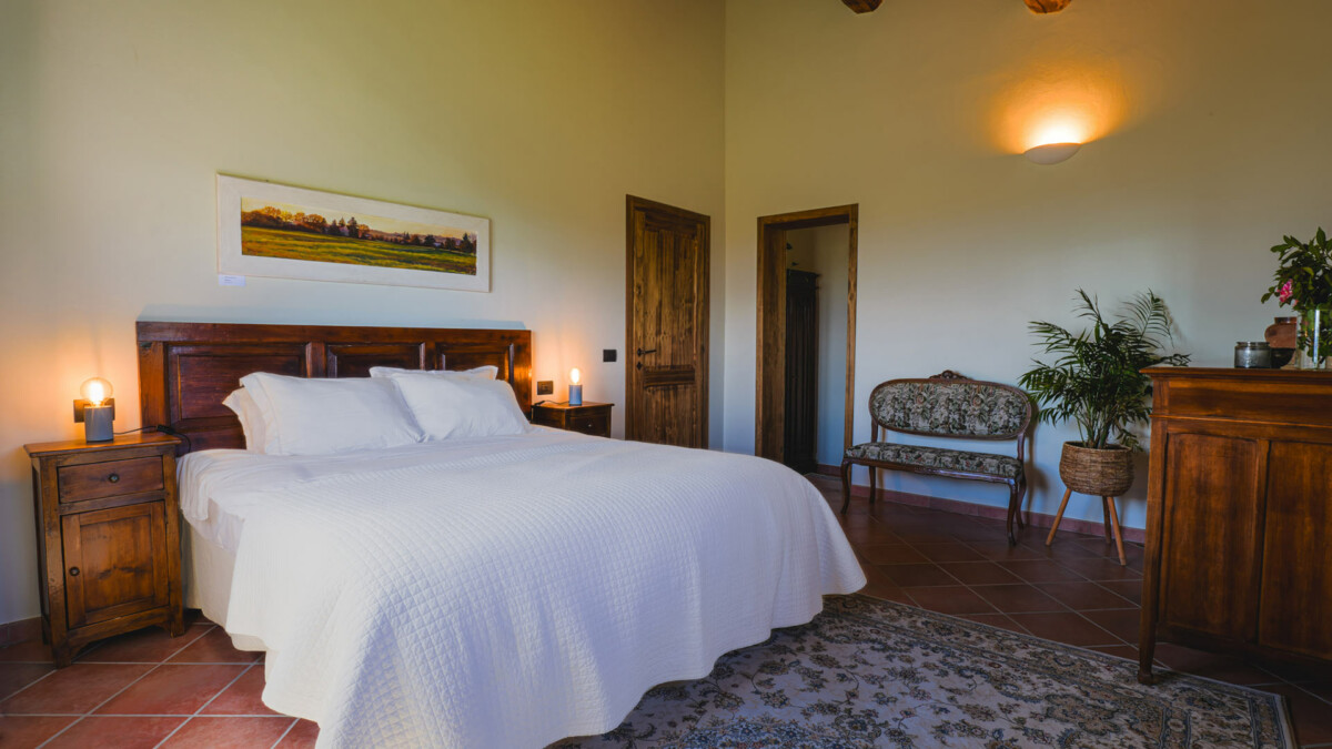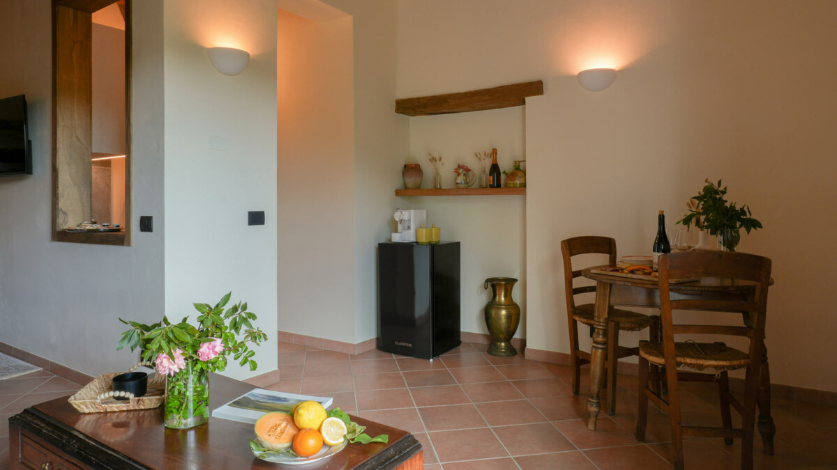 L’ambiance générale est élégante et apaisante, avec des tons neutres, une belle luminosité naturelle et une décoration raffinée qui reflète tout le charme de la campagne ombrienne.