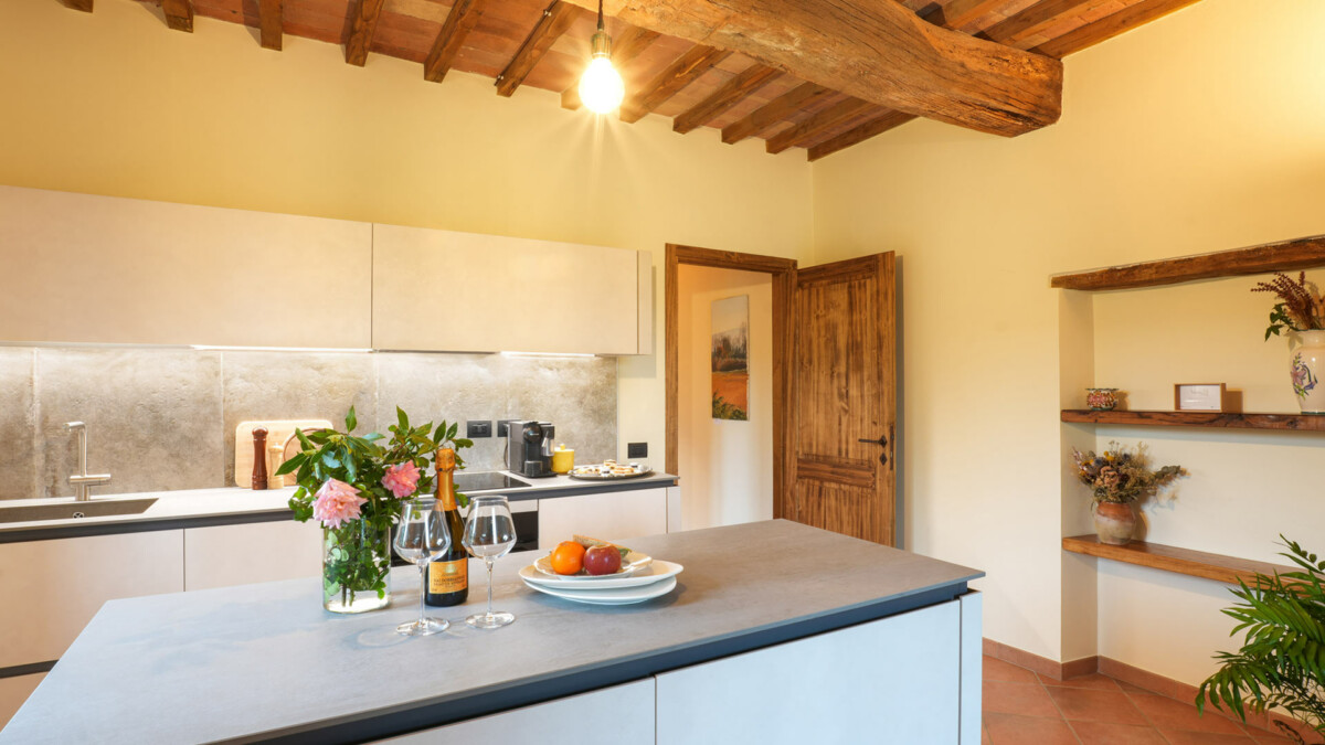 Villa del Poggio est une ferme du XVIIe siècle magnifiquement restaurée qui accueille familles et amis au cœur de l’Ombrie, à quelques minutes en voiture des trésors culturels des régions ombrienne et toscane. Alliant charme rustique et confort contemporain, le domaine offre 450 m² d’espace de vie raffiné répartis en quatre appartements privés. Située en hauteur, la villa bénéficie d’une vue panoramique sur les vignobles, les oliveraies et les châteaux, tandis que son système de climatisation réversible permet un séjour agréable en toute saison. Que vous préfériez vous détendre au bord de la piscine, participer à un cours de cuisine dans la cuisine d’été ou découvrir le riche patrimoine régional, la villa propose une expérience sur mesure et sereine dans un cadre italien authentique.