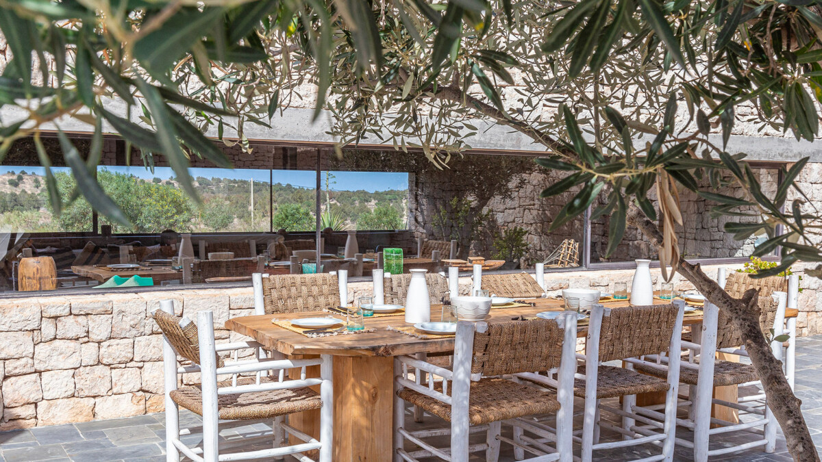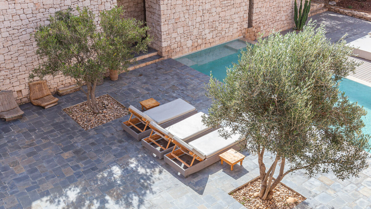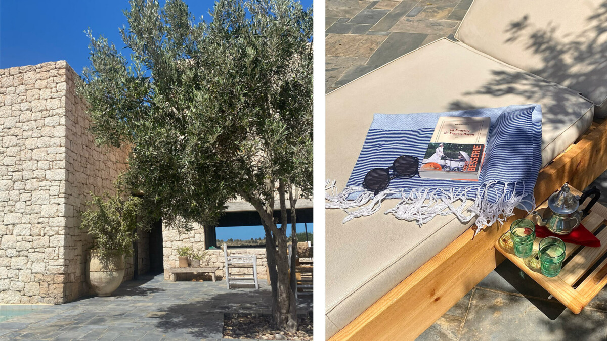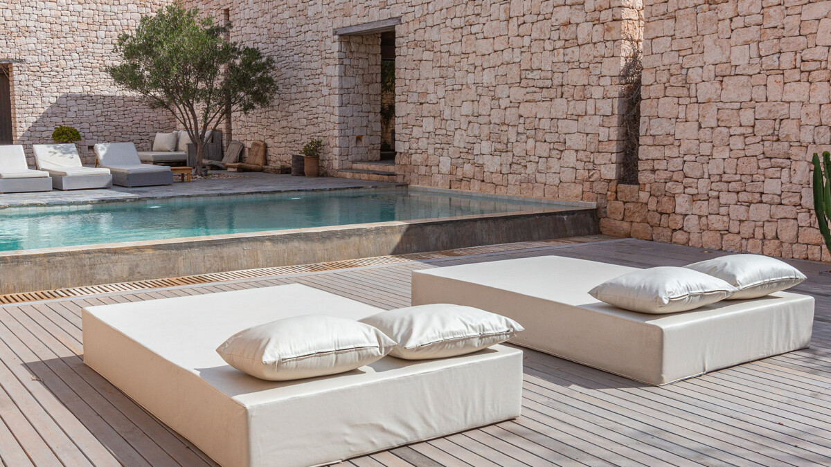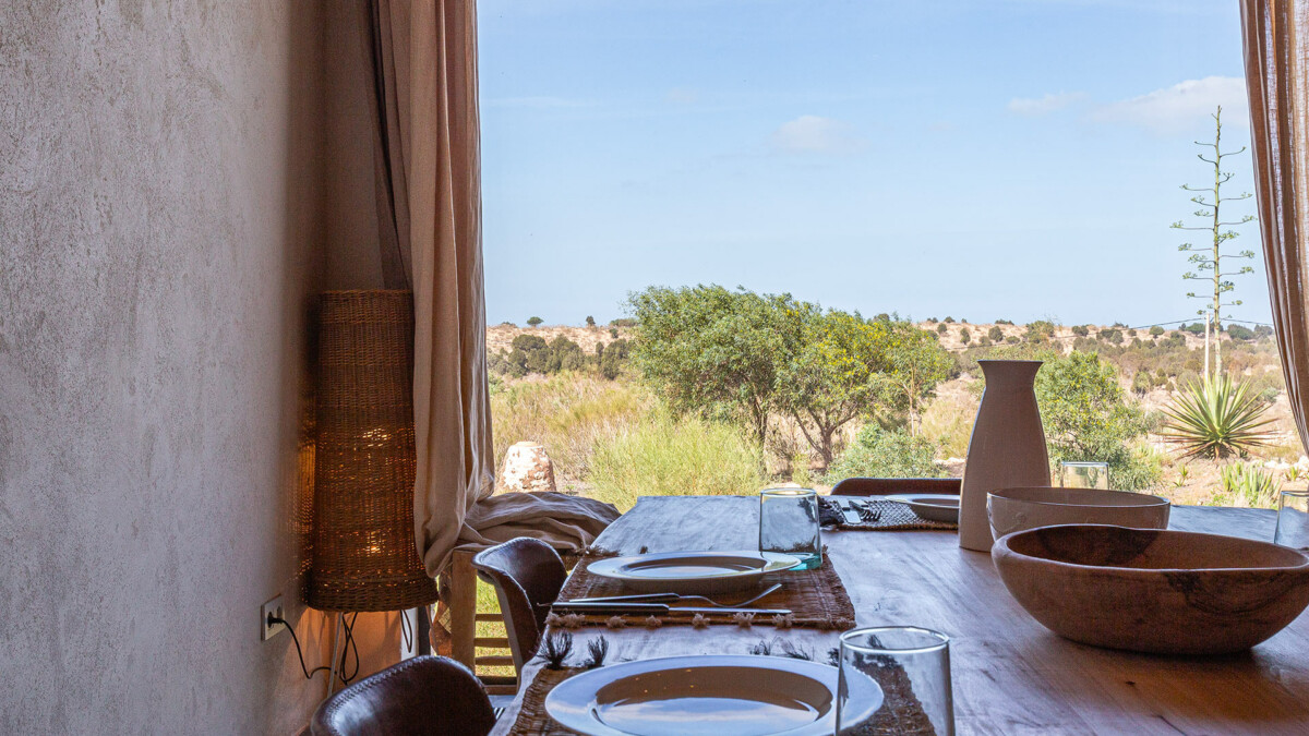 L’intérieur de la propriété est un mélange subtil d’architecture traditionnelle et de minimalisme contemporain. Il comprend un salon vouté en béton, qui sert d’espace pour le repos, la lecture, la musique et les discutions.
