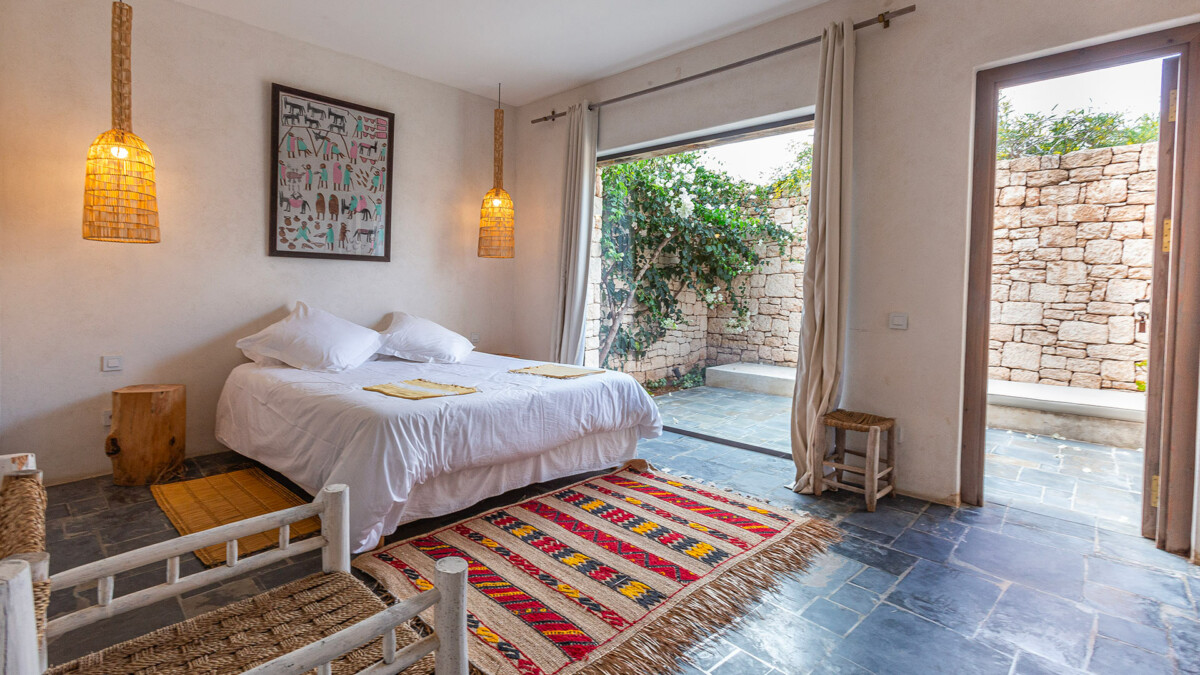 – les chambres 1,2,3,4 ont un accès direct à un petit patio privé. La chambre 5 est dans un bungalow proche de la maison, avec une jolie vue.