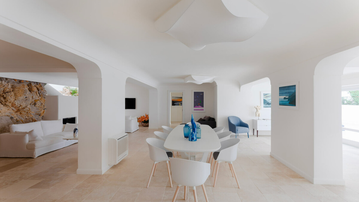 Les hôtes pourront apprécier la salle à manger moderne et le beau salon depuis lequel il est possible d’admirer une vue fantastique sur la mer.