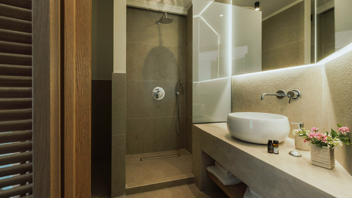 Chambre. La chambre propose 2 Lits dont 1 lit double 160 cm, 1 canapé lit transformable en lits twin. Salle de bain privée, avec douche. WC dans la salle de bain. La chambre inclut également : climatisation, salon.