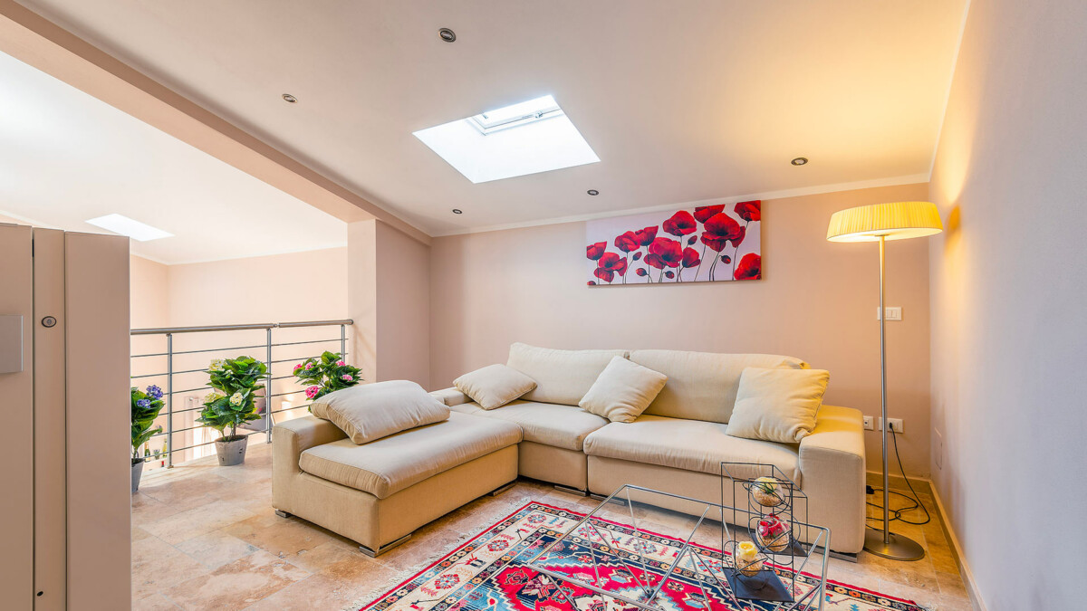 Enfin, vous trouverez une salle de télévision avec un grand salon d’angle accessible uniquement par l’ascenseur du spa.