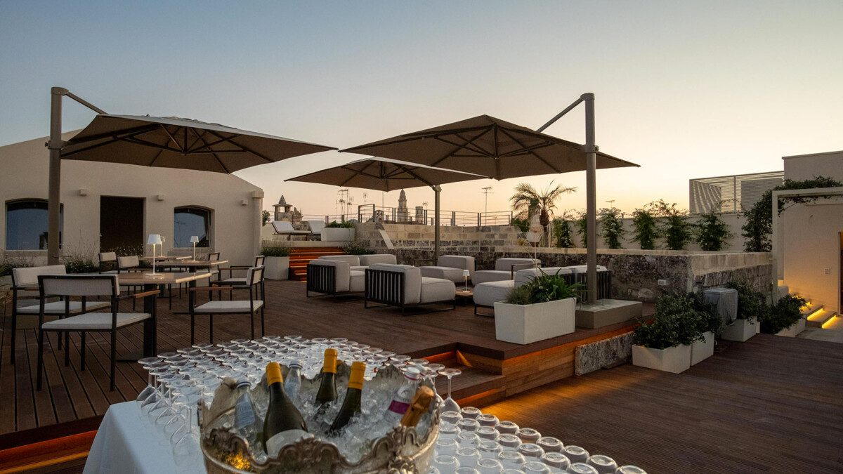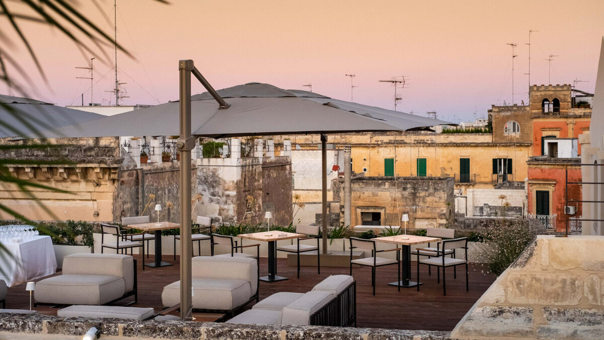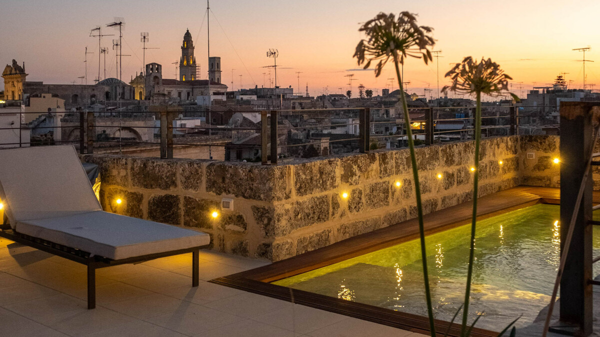 Les hôtes peuvent profiter des terrasses, du jardin ainsi que du toit terrasse avec piscine extérieure d’où il est possible d’admirer une vue incroyable sur la jolie ville de Lecce.