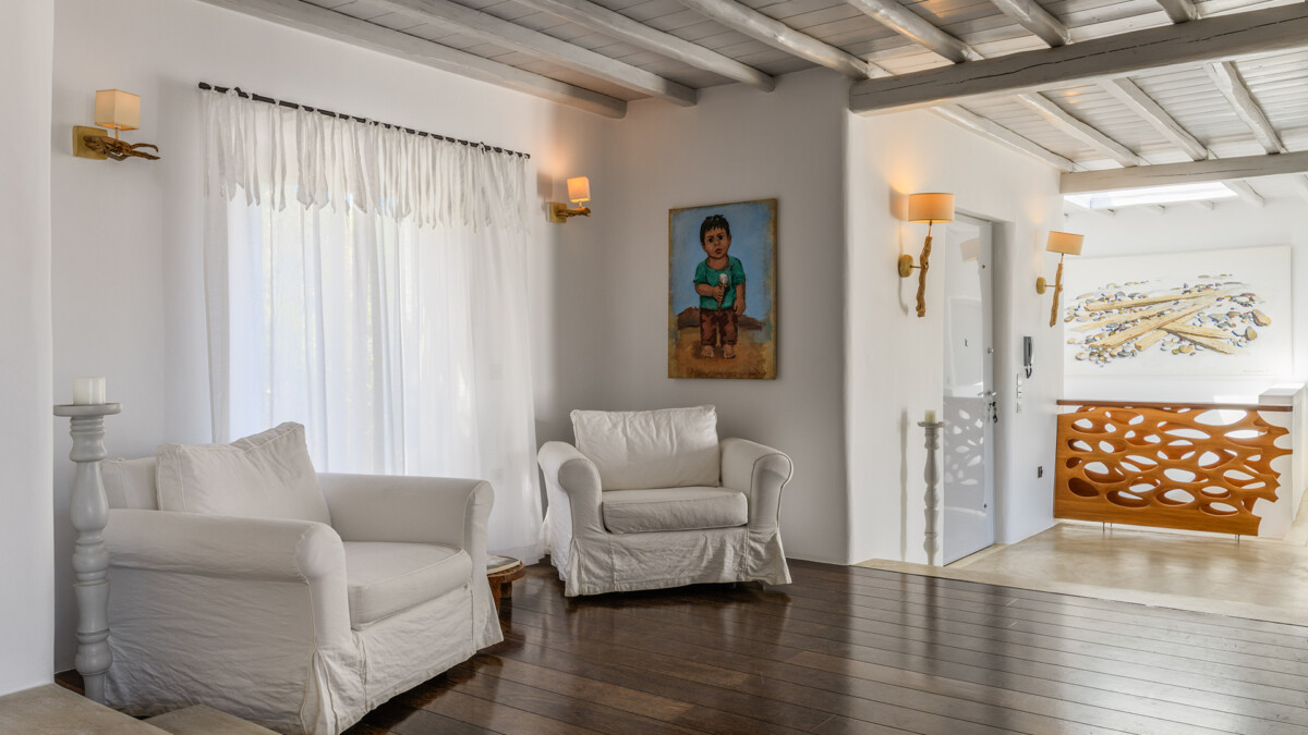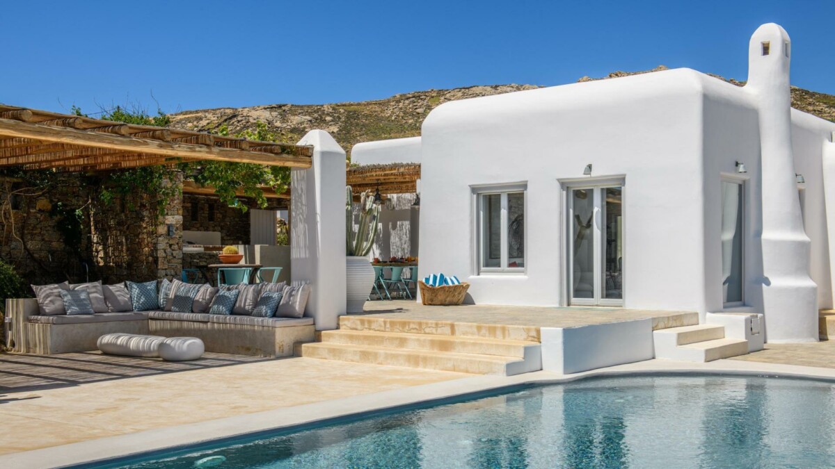 La Villa Elenitsa à Mykonos est l’incarnation de la maison de vacances idéale, offrant un cadre somptueux avec une architecture immaculée, une vue imprenable sur la mer, une piscine à débordement, un jardin méditerranéen et des prestations haut de gamme.