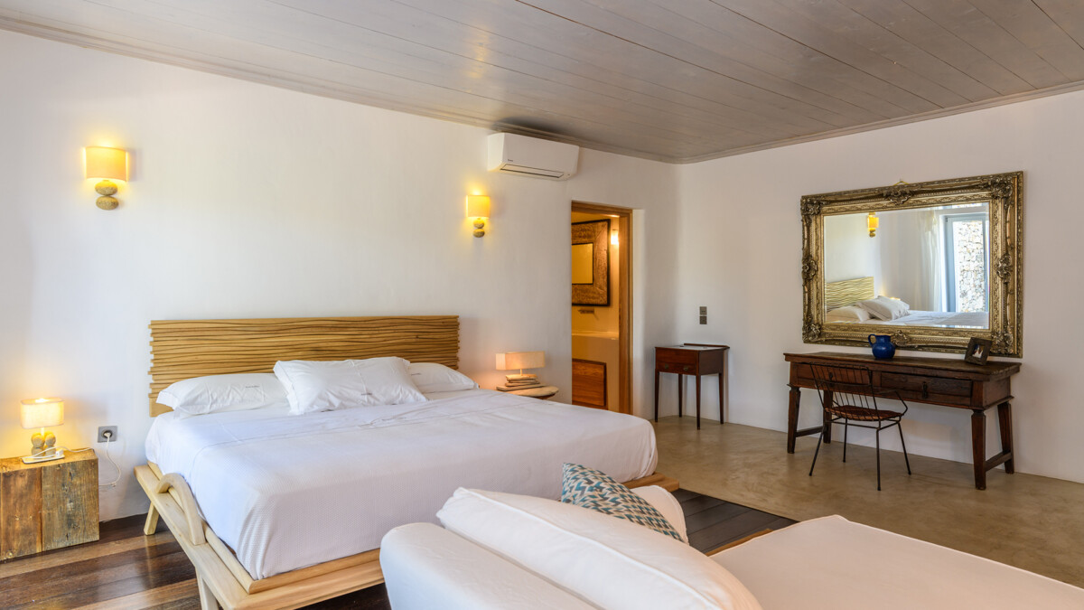 Les extérieurs de la Villa sont tout aussi impressionnants que l’intérieur. Une piscine à débordement invite à la détente avec sa vue spectaculaire sur la mer Égée. Le jardin méditerranéen crée un cadre paisible pour se relaxer, tandis que le terrain de padel et le barbecue promettent des moments de convivialité inoubliables.