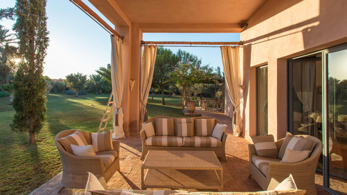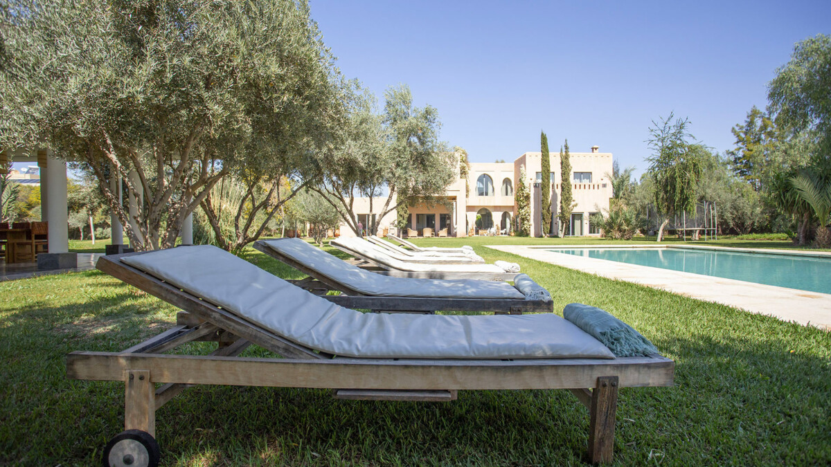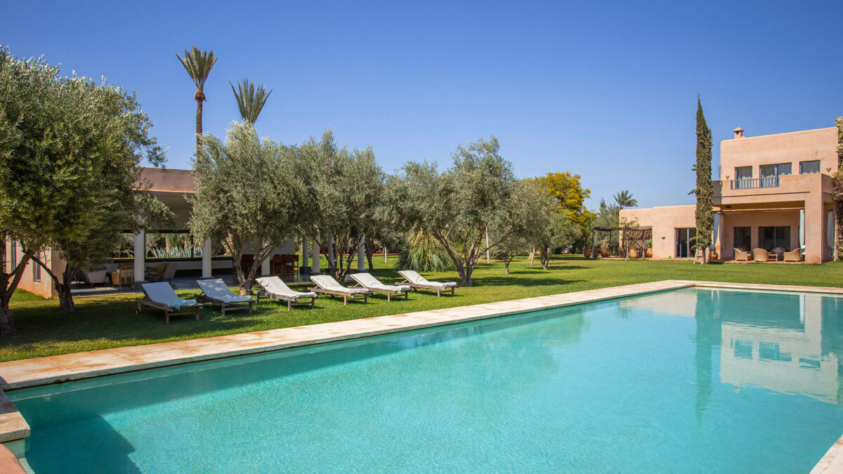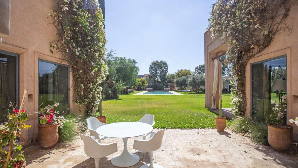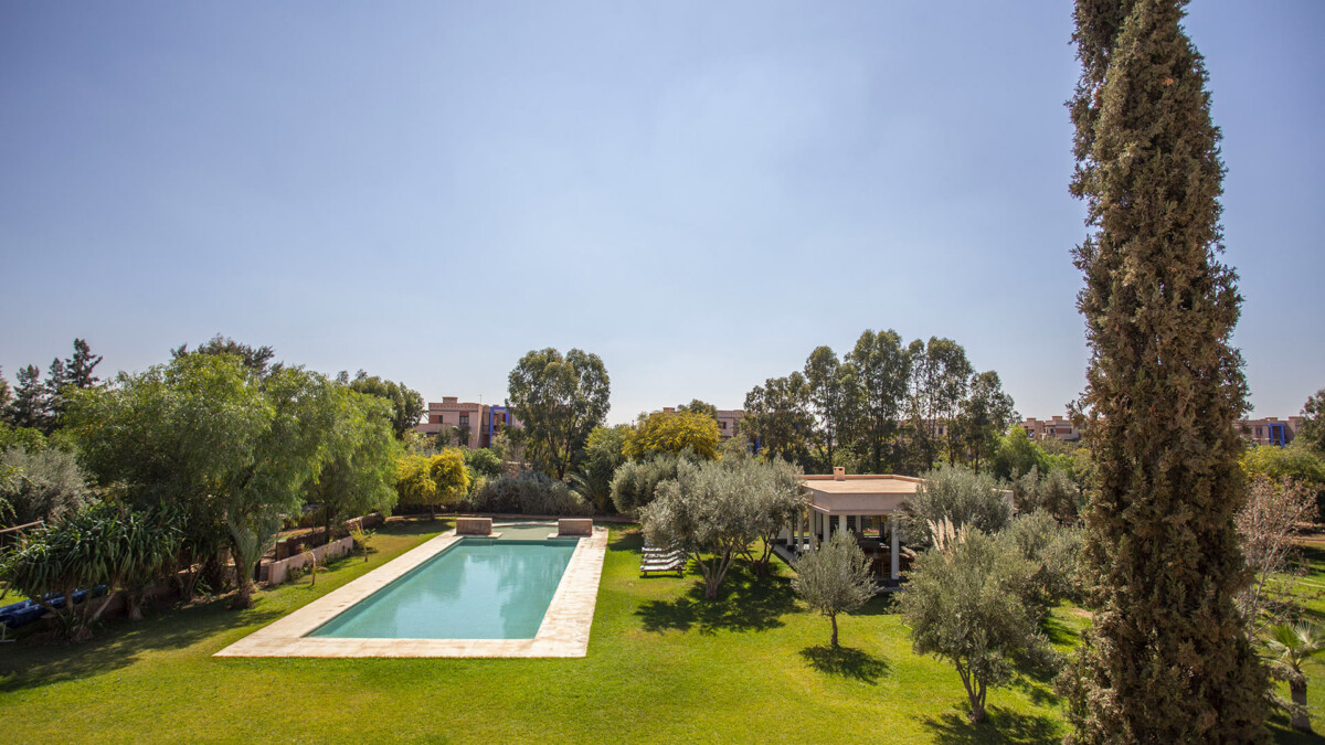 Cette belle villa de 7 chambres a une situation très privilégiée dans la Palmeraie de Marrakech en deuxième ligne du golf de la Palmeraie à quelques minutes du centre ville, du spa et des restaurants du Palmeraie Golf Palace.