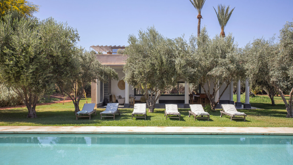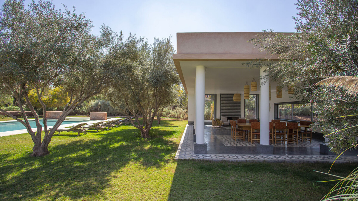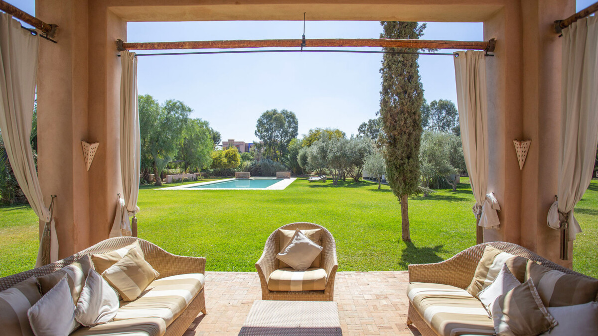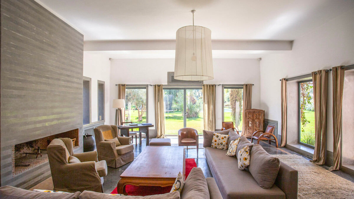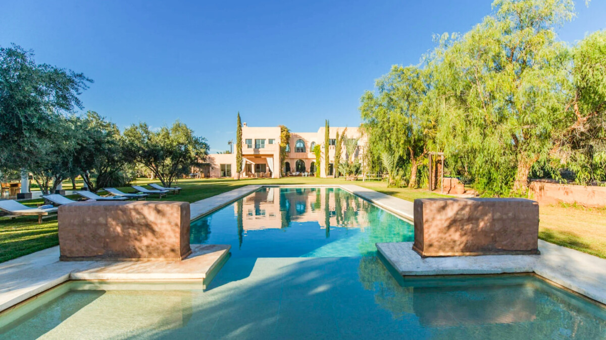 Cette belle villa de 7 chambres a une situation très privilégiée dans la Palmeraie de Marrakech en deuxième ligne du golf de la Palmeraie à quelques minutes du centre ville, du spa et des restaurants du Palmeraie Golf Palace.