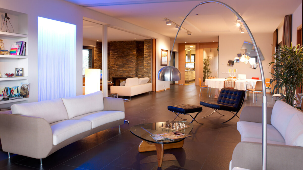 On y trouve un grand espace de vie, avec une cour intérieure et un éclairage « lumière du jour ». Il y a un home cinéma grand écran avec la télévision par satellite / DVD / connexions informatiques. Des espaces séparées incluent une salle de tennis de table et un passage vers le sauna et et la piscine.