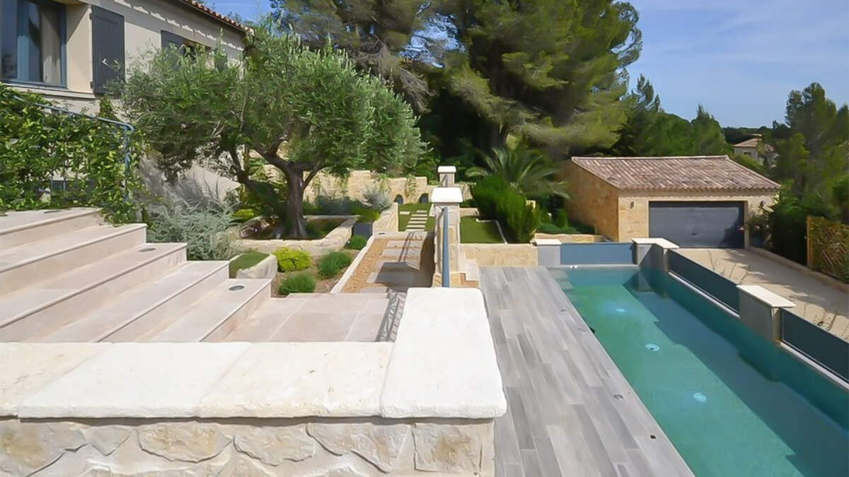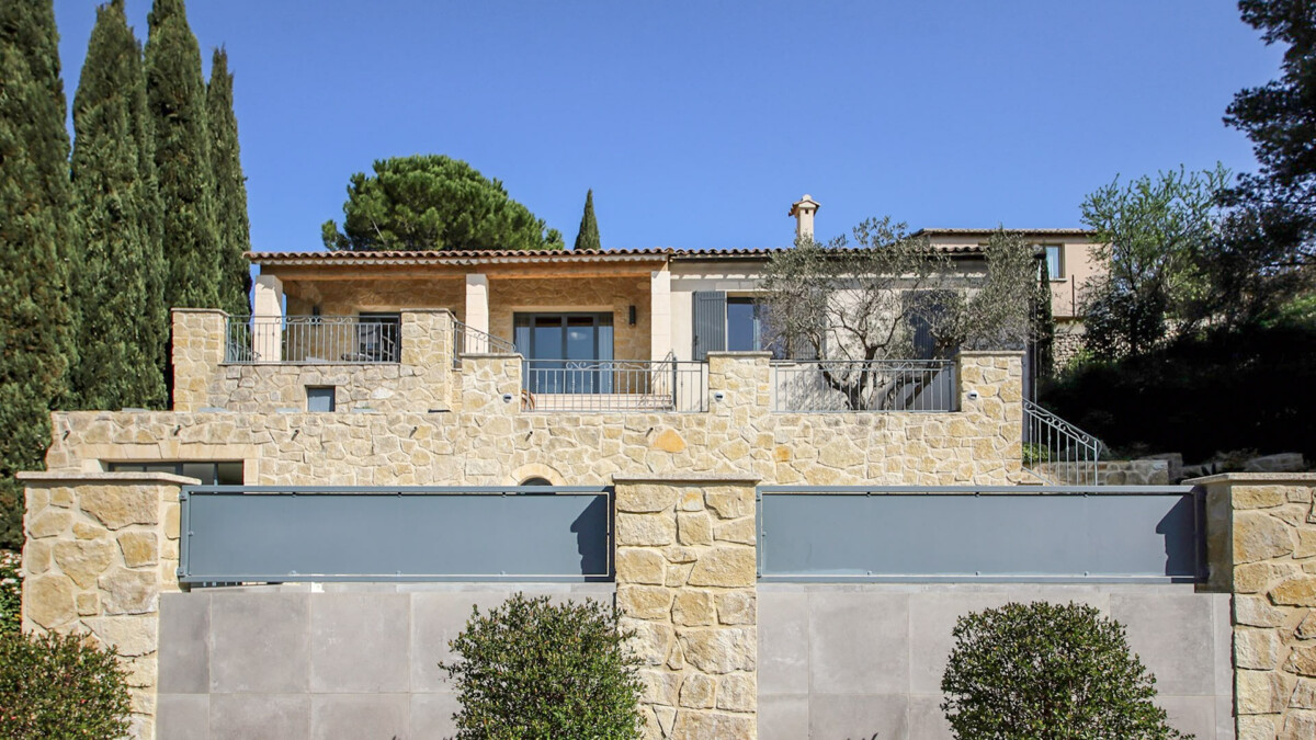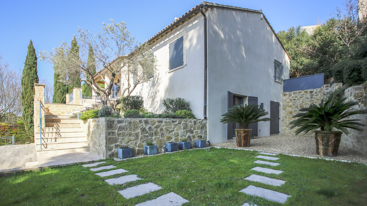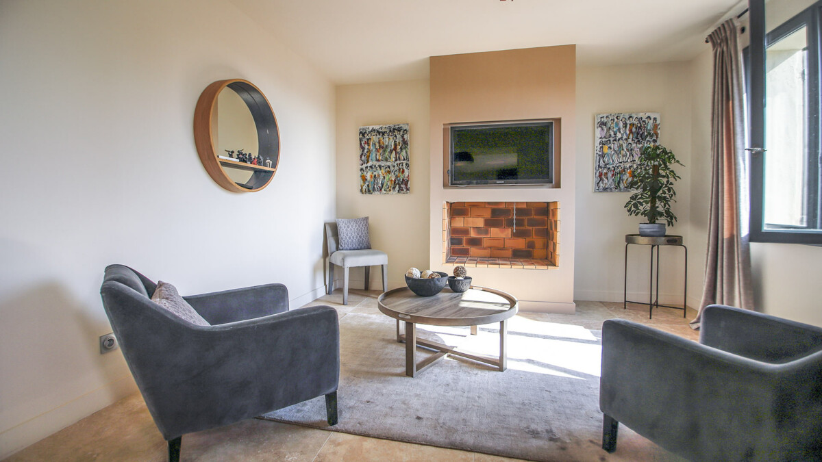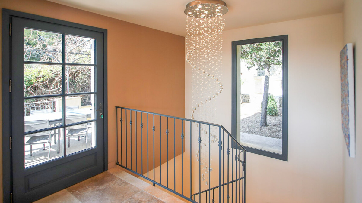 Le premier étage est accessible par le biais d’un très bel escalier en pierre et comporte un vaste séjour composé d’un coin salon avec télévision, d’une salle à manger et d’une grande cuisine entièrement équipée. Depuis le séjour, il est possible d’apprécier une magnifique vue sur la piscine de la villa. A ce niveau, se trouve également la dernière chambre de la maison : une suite parentale avec baignoire centrale, douche à l’italienne et dressing.