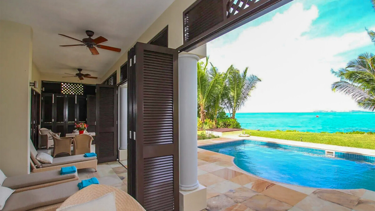 Suite N° 2 parentale de 60m2 : climatisée (cabine de douche, baignoire, WC privés, dressing et un coffre-fort + terrasse avec vue sur la mer).