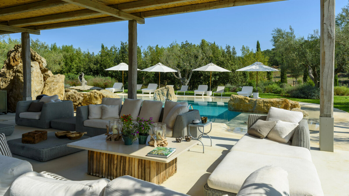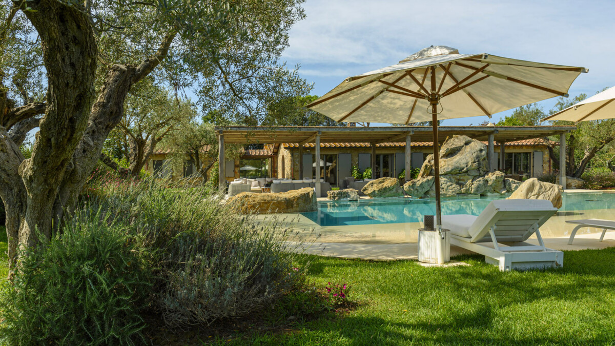 Le jardin méditerranéen s’étend sur un hectare, planté de cyprès, oliviers et herbes aromatiques, et garantit une intimité totale. La piscine (de 18 x 7 m – Profondeur : 0.25 à 2.5m), entourée de rochers, s’intègre parfaitement au paysage. De grandes terrasses meublées permettent de profiter du soleil ou de s’abriter à l’ombre. Un four à pizza traditionnel, un barbecue au charbon de bois, un potager et un poulailler agrémentent la vie en plein air. Une salle de sport extérieure couverte et un parking de dix places sont également à disposition. Enfants et adultes trouveront dans ce cadre un espace de liberté rare.