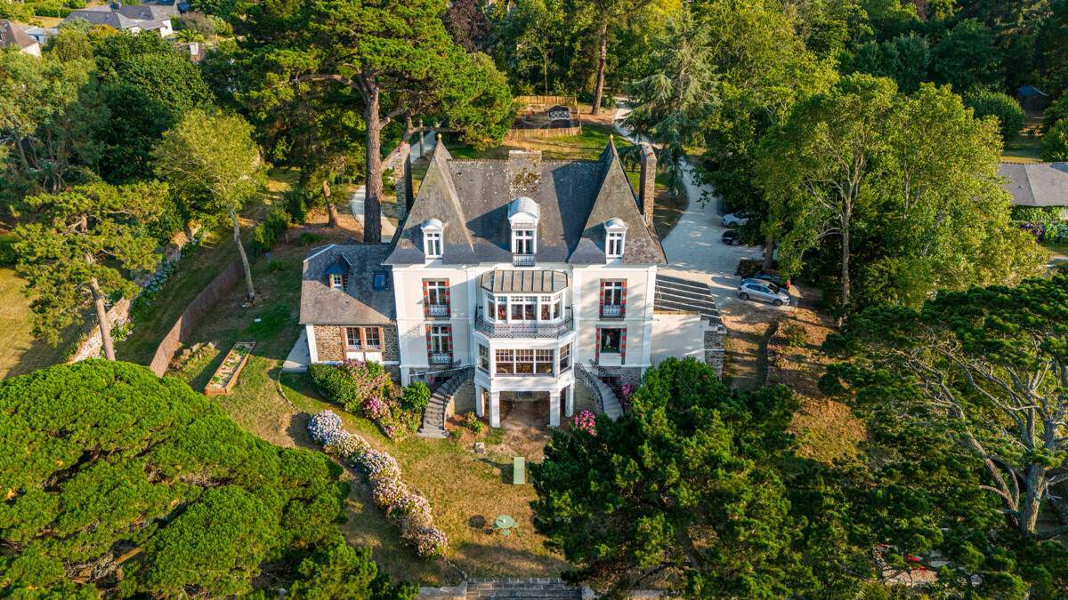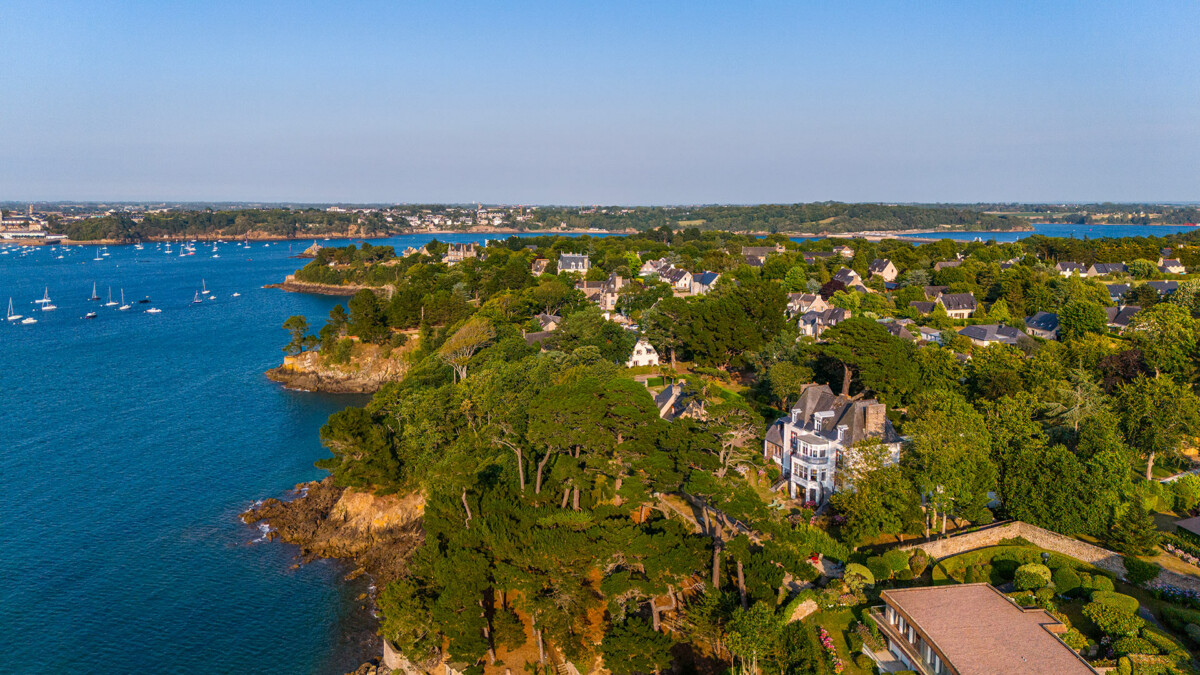 Un vaste parc d’un hectare entoure la villa, invitant à la promenade parmi les arbres séculaires et les massifs d’hortensias vibrants. Un bassin et un sentier pittoresque conduisent directement à la plage à quelques pas de là. La villa offre des vues captivantes sur la baie et, à l’horizon, sur la légendaire cité de Saint-Malo. Les terrasses sont idéalement placées pour profiter d’un café le matin ou d’un apéritif au coucher du soleil, alors que le bruissement des vagues et le parfum des pins ajoutent une note de sérénité à cette oasis de luxe.