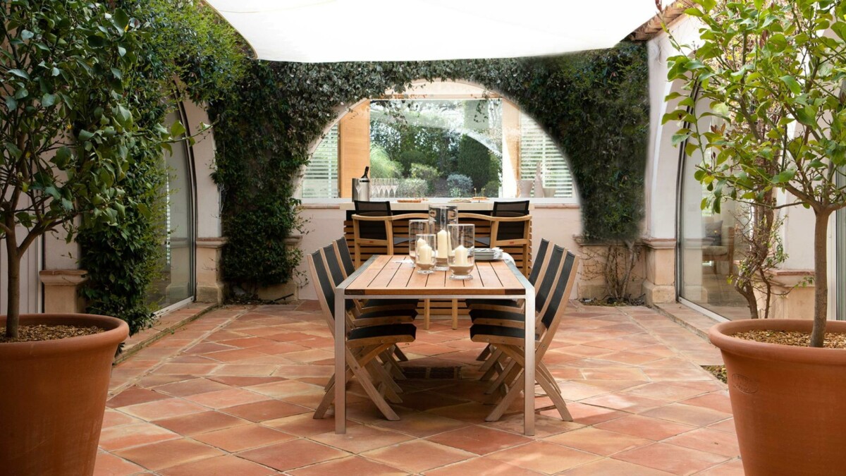 La maison est organisée autout d’un agréable patio central, qui permet de profiter d’un peu de fraîcheur en plein été. Les différentes pièces, comme le grand salon, s’ouvrent sur l’extérieur et la terrasse avec transats face à la piscine.
