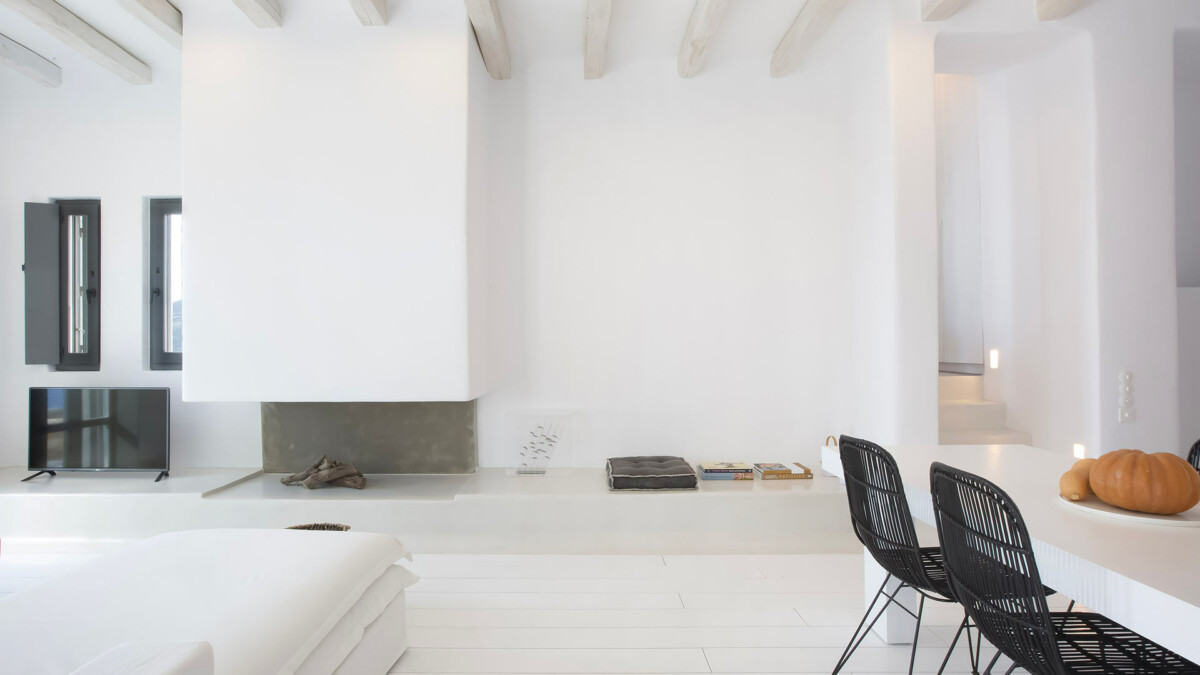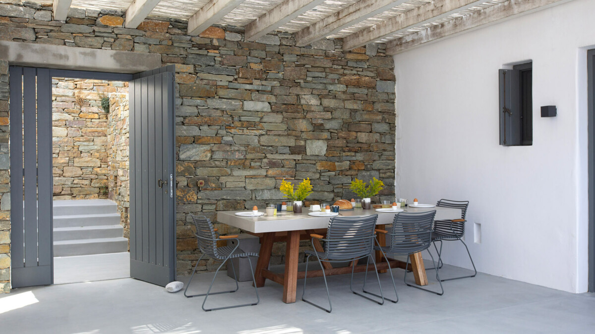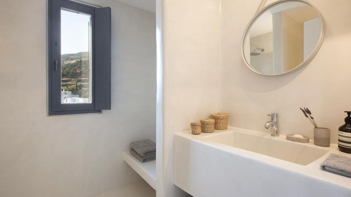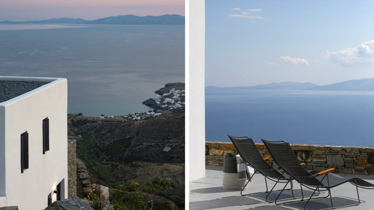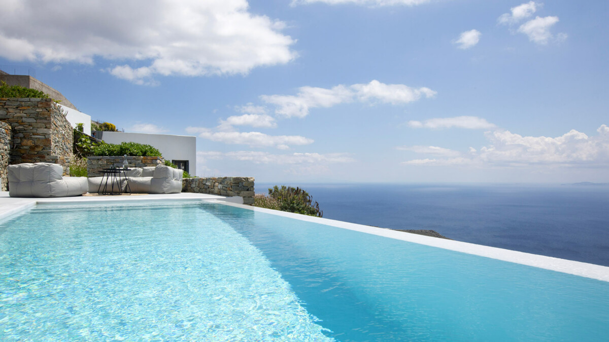 Les espaces extérieurs, soigneusement aménagés, se composent d’une piscine à débordement, d’un jardin méditerranéen luxuriant et d’un coin salon ombragé pour des moments de détente absolue. Ces espaces vous offrent un panorama magique, avec des vues à perte de vue sur Kardiani et la mer Égée scintillante, tout particulièrement au coucher du soleil.