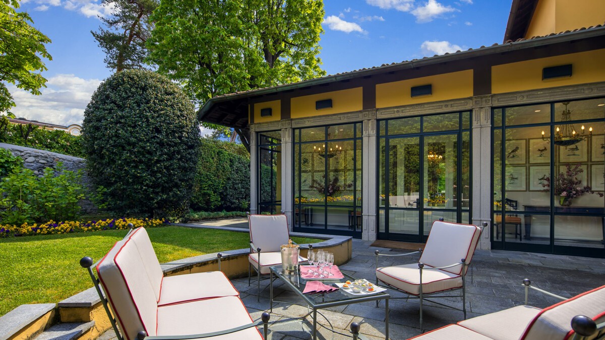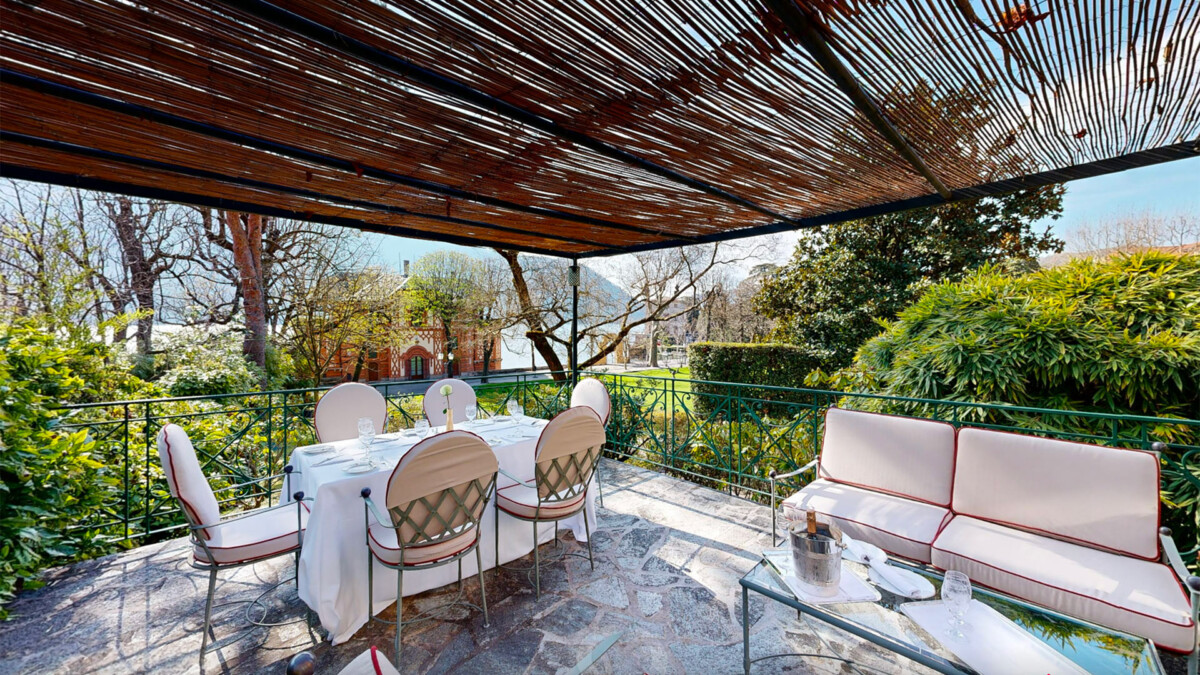Tout en respectant l’atmosphère élégante de son environnement naturel, la villa présente un design classique et moderne qui s’harmonise parfaitement avec les caractéristiques traditionnelles du lac. Une véranda lumineuse s’ouvre sur le jardin caché où les hôtes peuvent se détendre et se relaxer. Une deuxième terrasse avec un grand patio (60 m² au total) constitue un autre atout unique de cette maison.