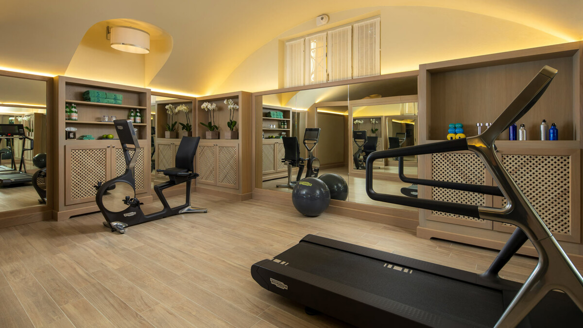 L’entrée, une chambre et une salle de bain pour le personnel, une chambre avec salle de bain en marbre attenante et une salle polyvalente (salle de sport et salle de détente).