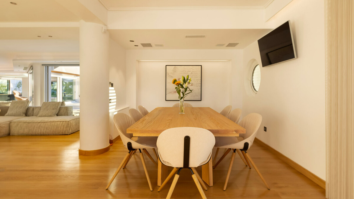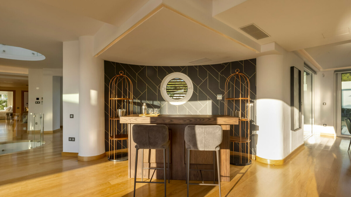 L’intérieur de la villa ne manque pas d’impressionner avec ses espaces de vie vastes et lumineux. Le rez-de-chaussée accueille une salle de jeux pour les moments de détente, incluant une table de ping-pong et un billard, ainsi qu’une salle de sport pour ceux désireux de maintenir leur routine sportive. Un salon doté d’un Home Cinema vous permet de profiter des derniers blockbusters dans un confort optimal. Une cuisine moderne, fera le bonheur des passionnés de cuisine.