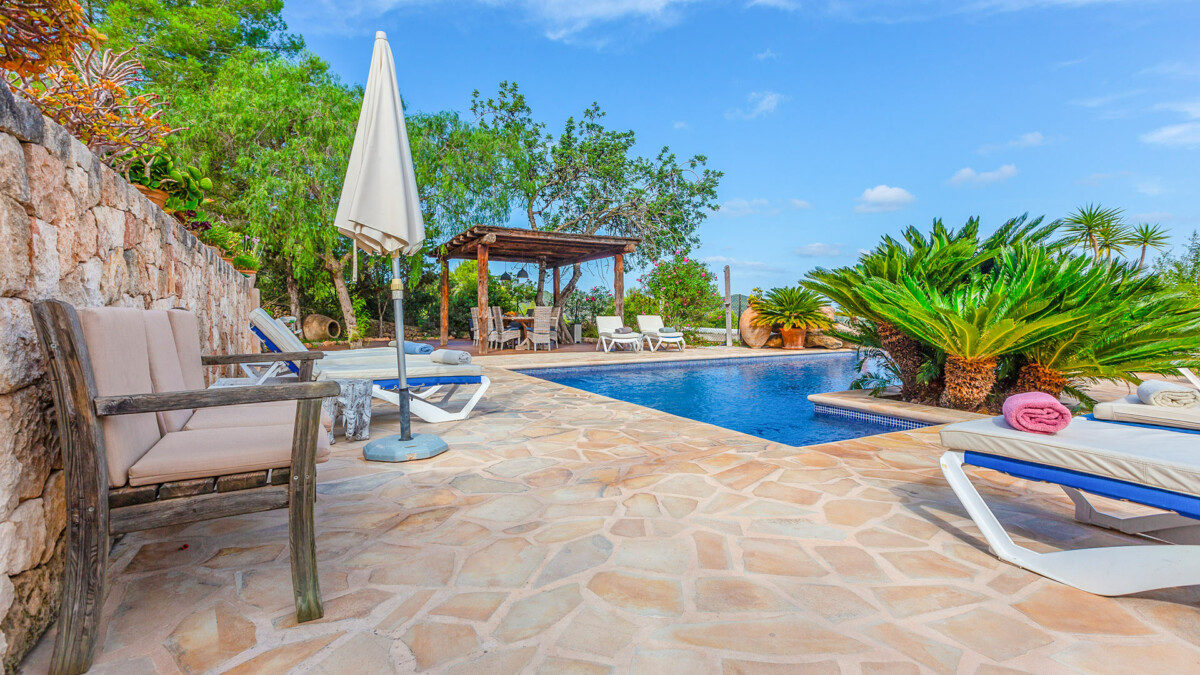La maison est à 300m du magnifique petit village de San Agustín, à 4 Km de San José et à 20 Km d’Ibiza ville.
