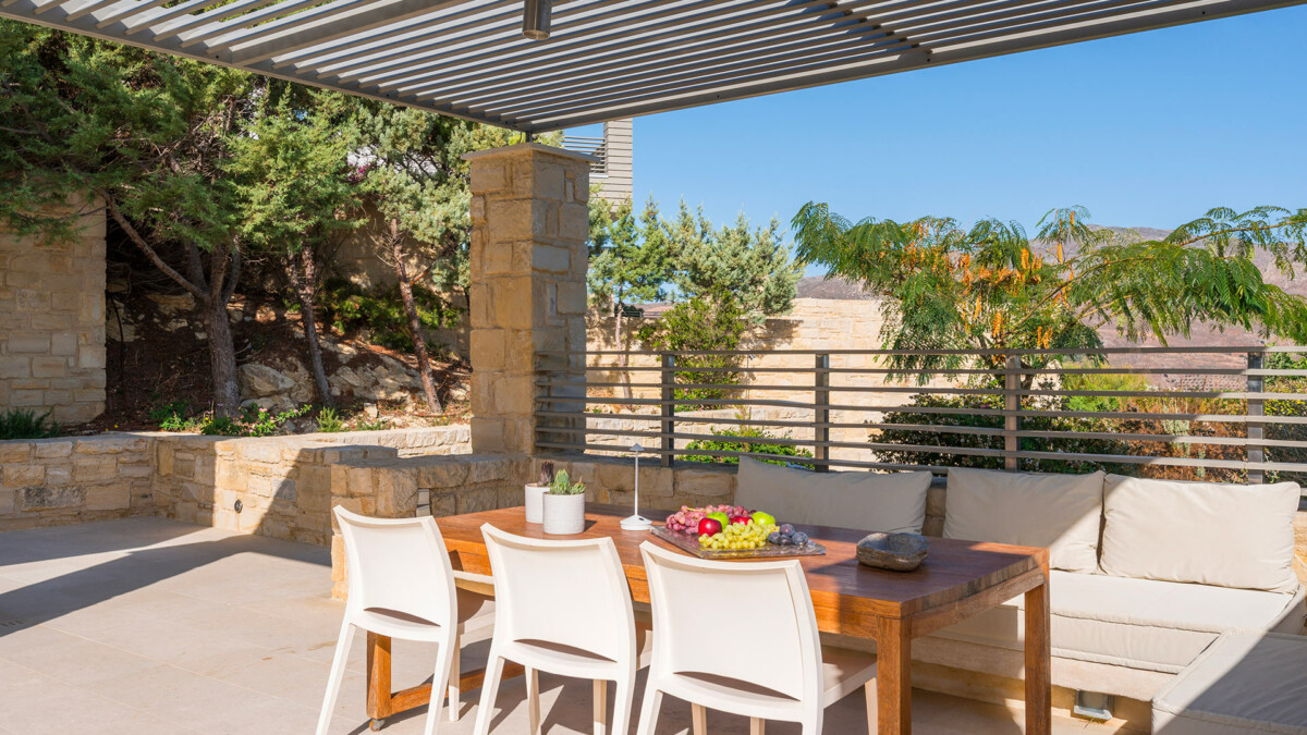 La zone extérieure dispose d’une piscine de taille infinie et d’un grand coin salon / salle à manger couverte d’une pergola tqui crée à la fois l’ombre et permet à la lumière du soleil de psser. Des chaises longues luxueuses et sophistiquées ornent la spacieuse terrasse pour vous permettre de vous détendre à tout moment de la journée.