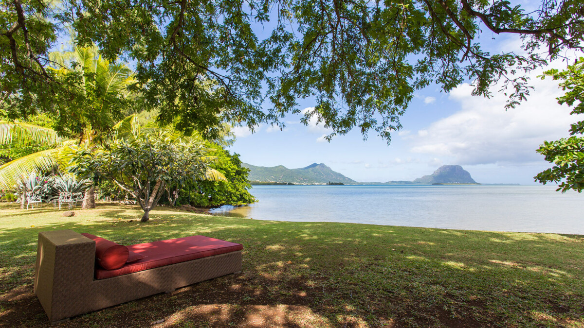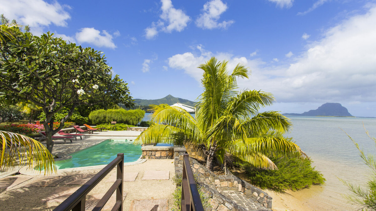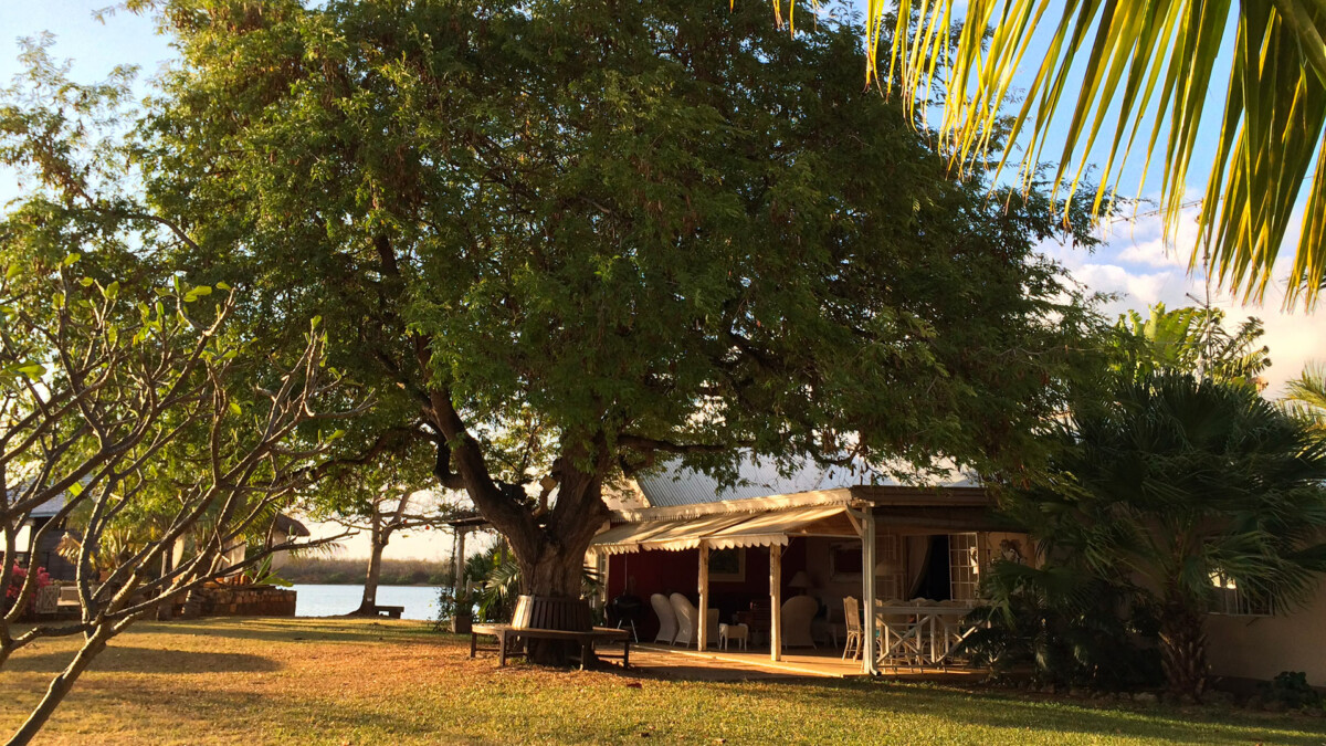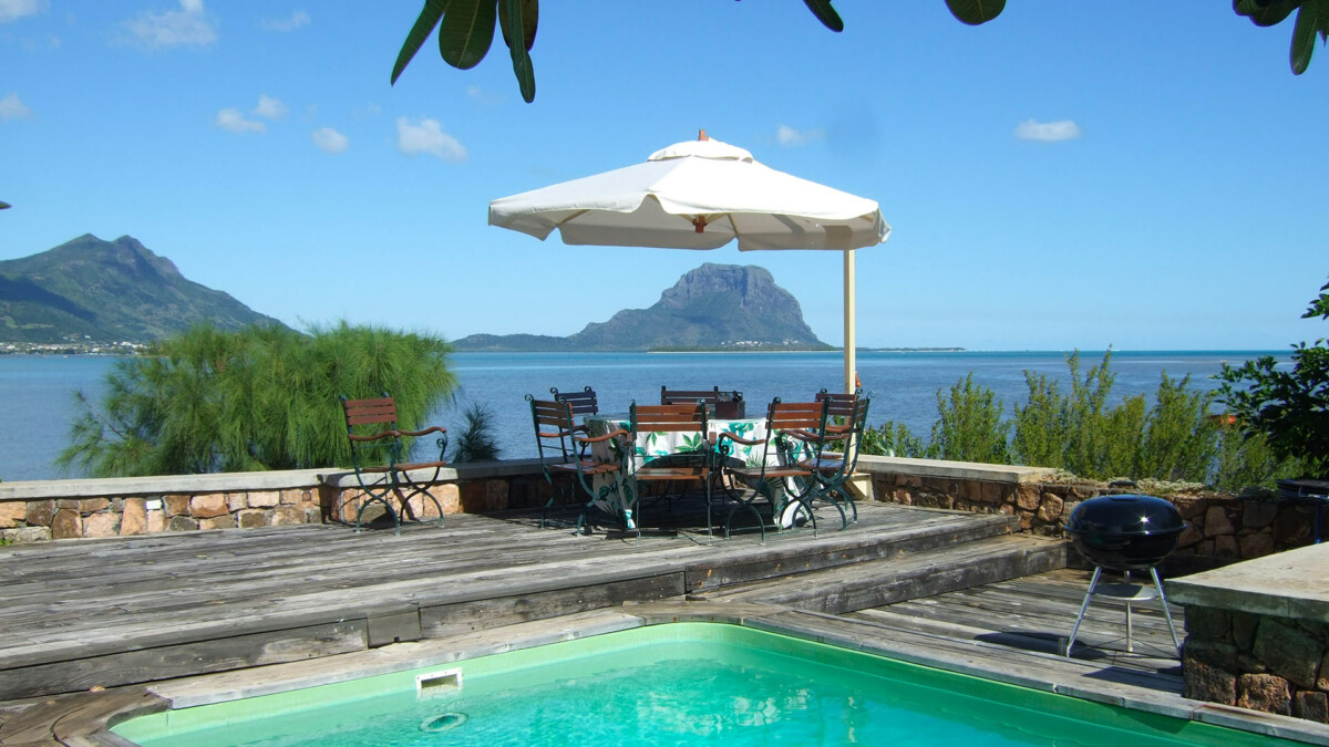 La maison jouit d’une vue magnifique sur le lagon et la montagne du Morne.