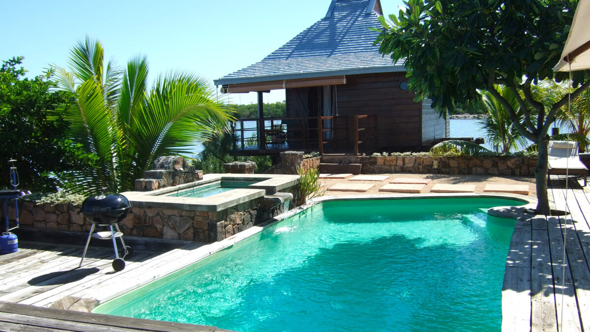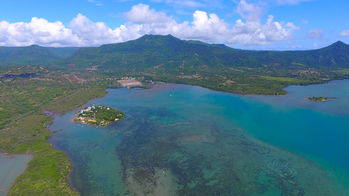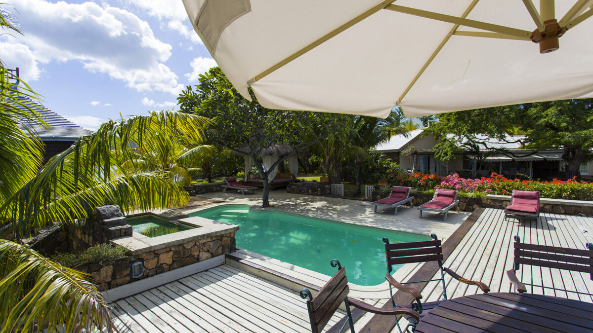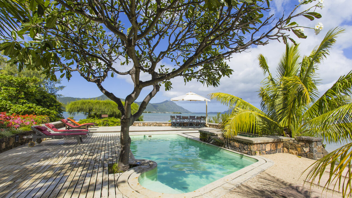 La maison jouit d’une vue magnifique sur le lagon et la montagne du Morne.