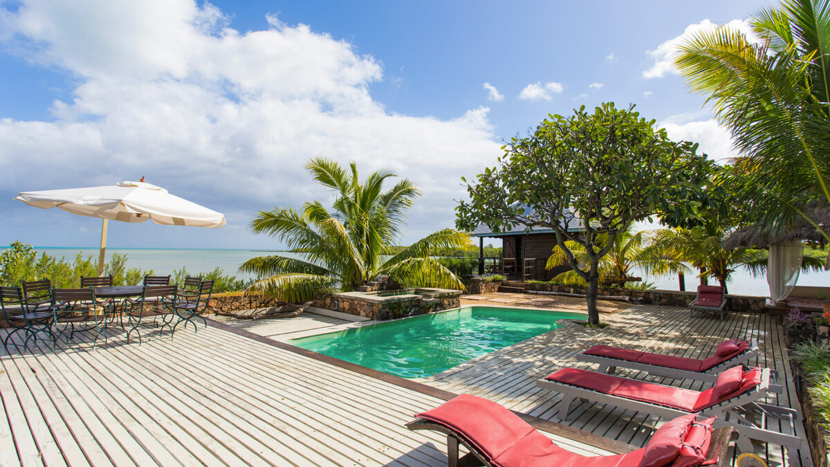 La villa est située à l’îlot Fortier, sur la route entre Rivière Noire et Le Morne.