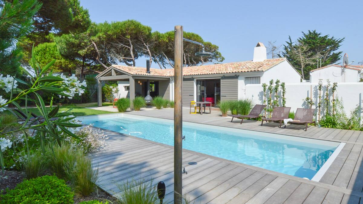 Magnifique villa pour les amoureux de la plage et de la décoration contemporaine. Située à quelques encablures de l’une des plus belles plages de l’Ile de Ré, cette villa privilégie les volumes et le goût du beau, accueillant généreusement 10 personnes dans ses 275m2. Dans un cadre préservé et entourée de majestueux pins parasols, la maison s’intègre naturellement dans un environnement boisé. Protégé par la dune des vents dominants, le jardin principal permet de profiter de la piscine dès l’arrivée des beaux jours.