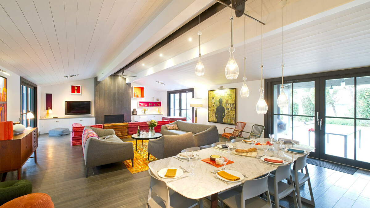 Bénéficiant d’une luminosité extraordinaire grâce à des ouvertures surdimensionnées sur les jardins et cours intérieures, et à une double exposition est-ouest, la maison est décorée avec le goût du beau, associé à des matériaux nobles et à une extrême qualité dans les finitions. Elle est meublée dans un style intemporel et affirmé, associant mobilier contemporain italien et pièces scandinaves des années 50.