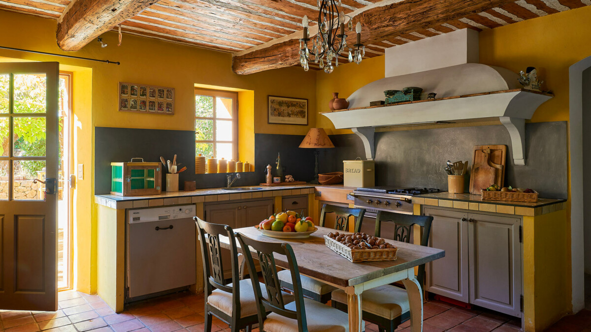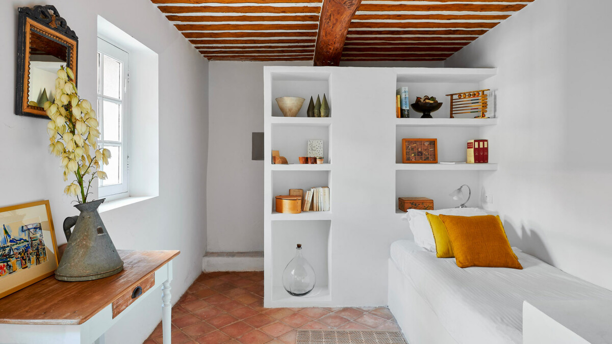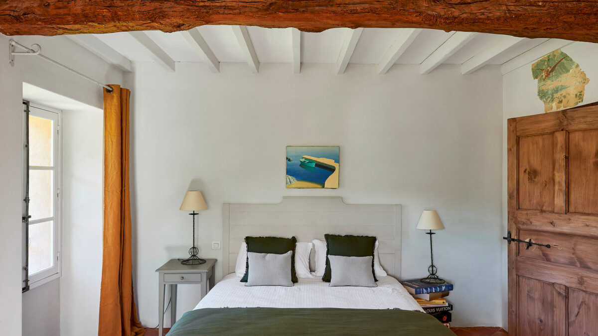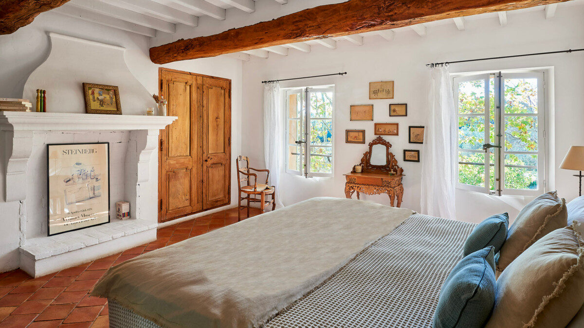 Vous retrouverez également quatre chambres, dont une au rez-de-chaussée. Chacune est décorée avec charme et dispose d’un style provençal, avec des poutres apparentes au plafond et dse carreaux de Salernes au sol.