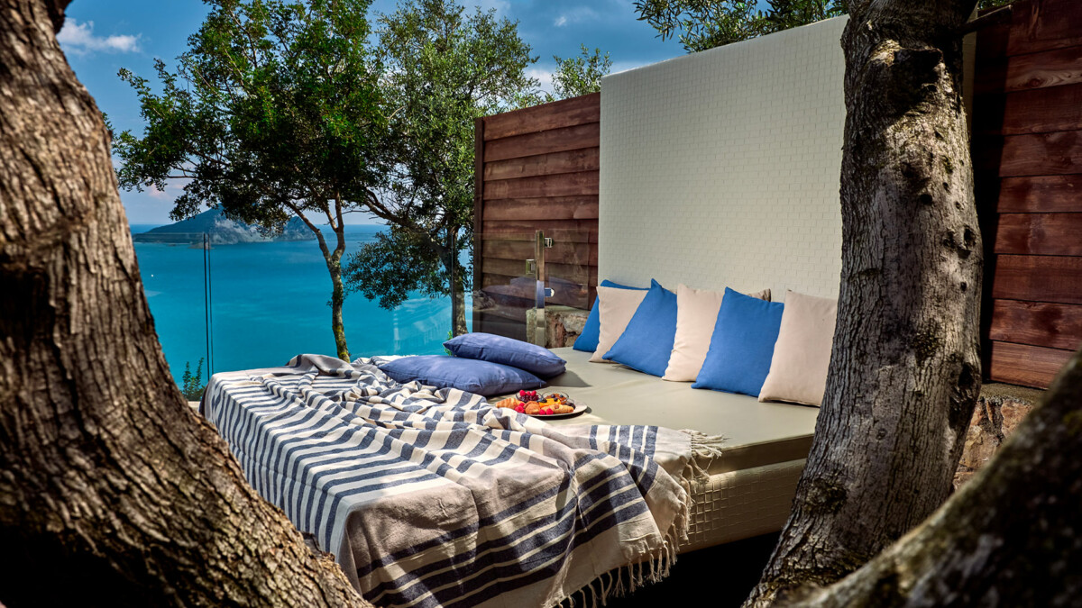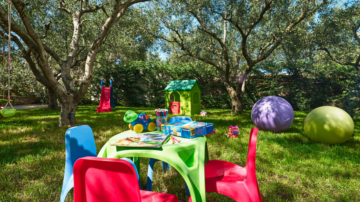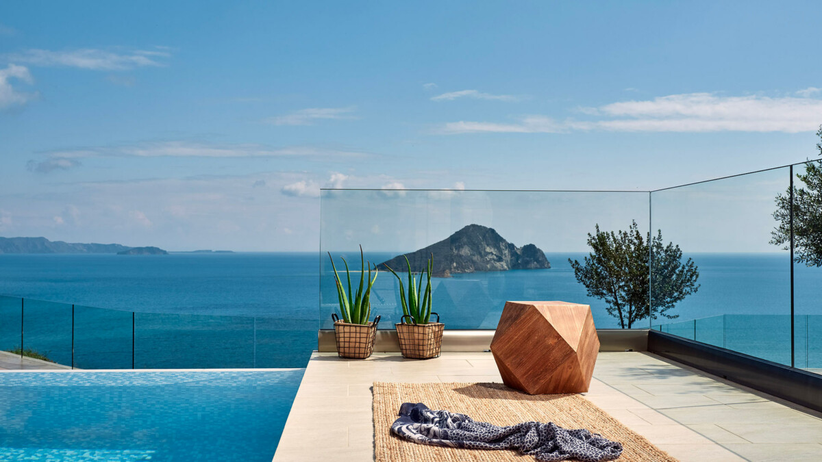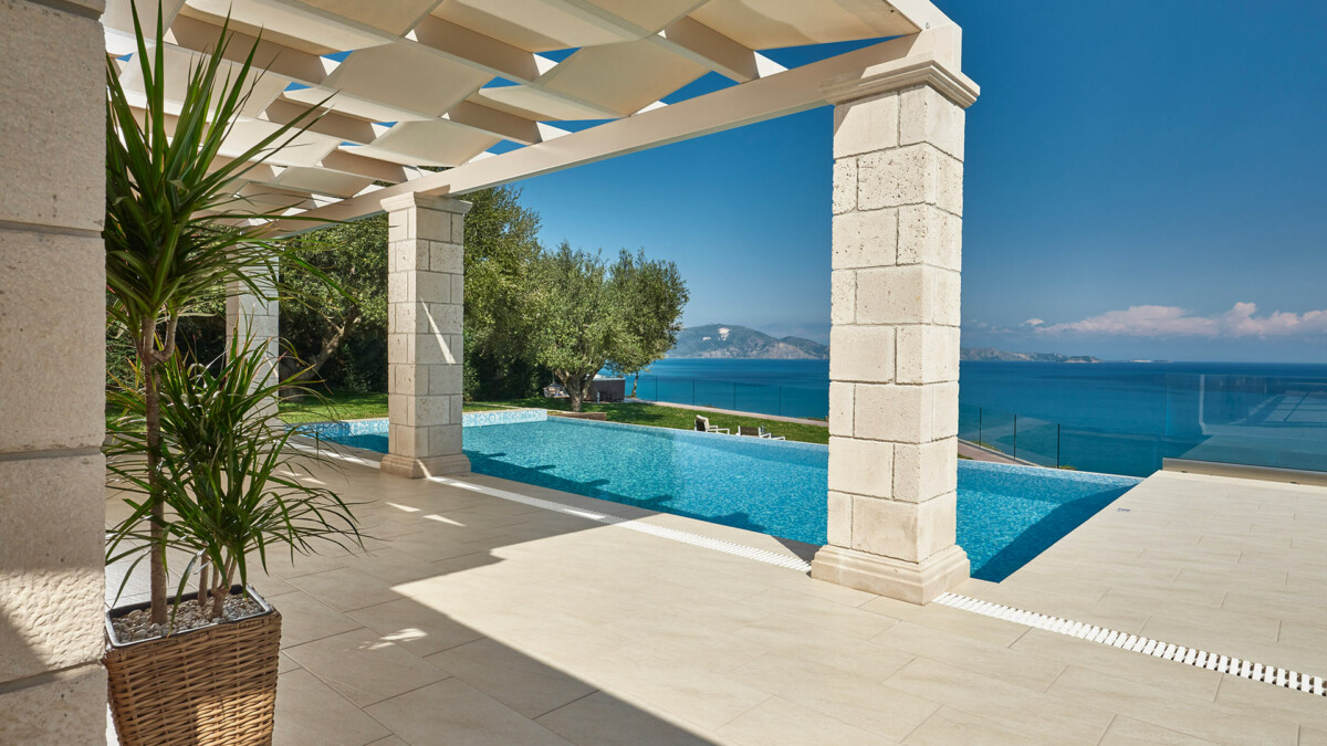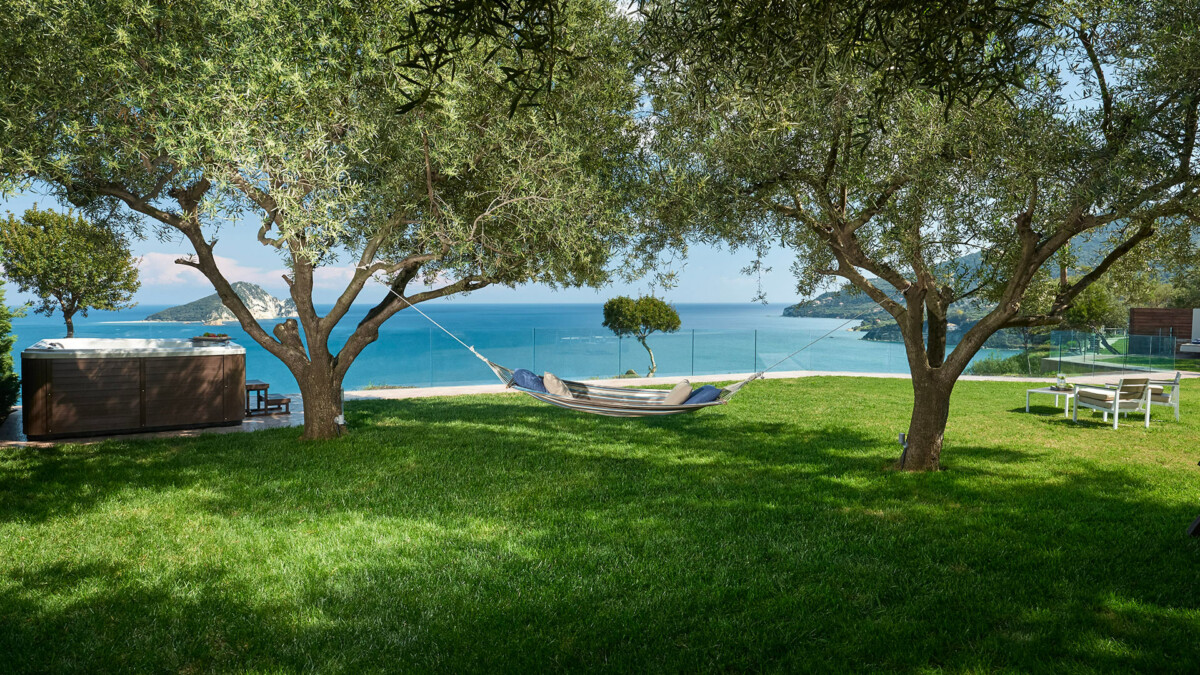 The private swimming pool 10 meters x 5 meters also have an inpool hydro and air massage. The pool is surrounded by a lush garden looking out to a magnificent view of the Ionian Sea and the isle of Marathonisi. Its waterfall effect is amazing. A jacuzzi is also at your disposal at the villa. Lots of outdoor living space are available, large terraces with sunbeds, pool chairs and pool umbrellas allowing guests to sit, relax and enjoy the sunset. There is a barbecue area-grill, an outdoor kitchen, a dining area where guests can sit and have their meal. For those who loves yoga, they can make maximum use of the Alfreso yoga area. A play area is available for children.