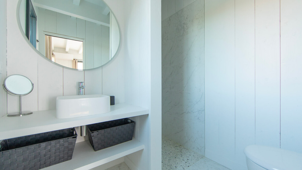 Chambre, 1er étage. La chambre propose 1 lit double 160 cm transformable en lits twin. Salle de bain privée, avec douche. WC dans la salle de bain. La chambre inclut également : climatisation.