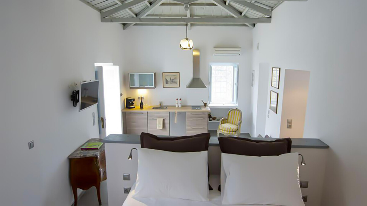 Une chambre avec un accès indépendant se situe également dans la maison principal et dispose d’un lit double (ou twin) et d’une salle de bain privative.
