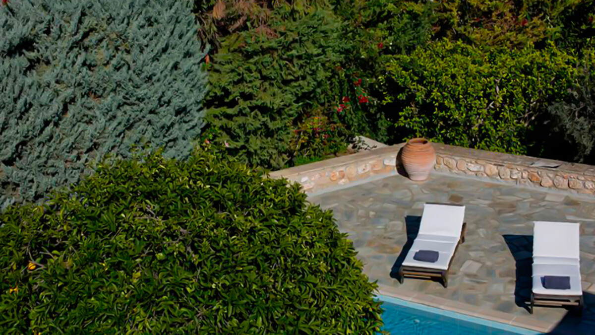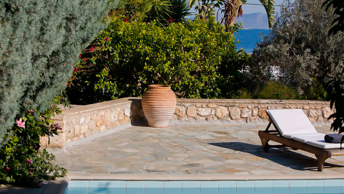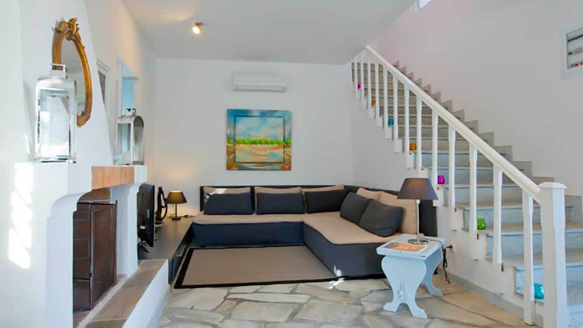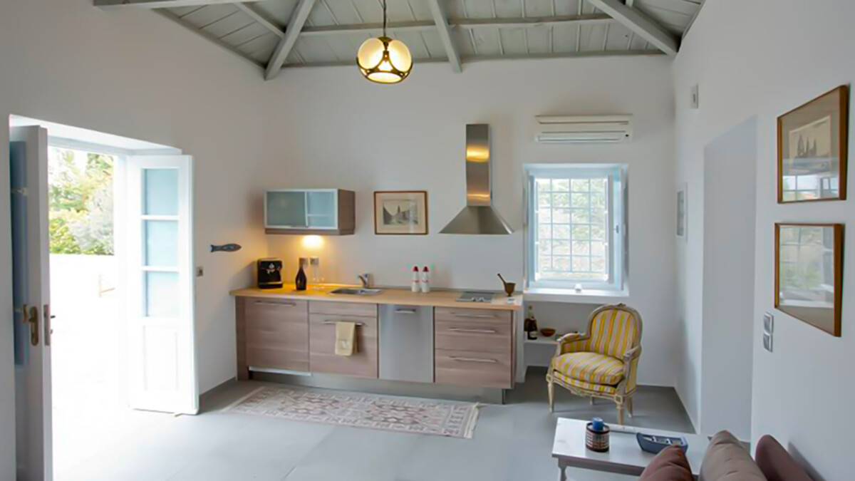 La villa se situe dans le quartier de Kounoupitsa à 10 minutes à pied du village principal (Dapia) et a 5 minutes à pied de la mer, de quelques commerces et restaurants.