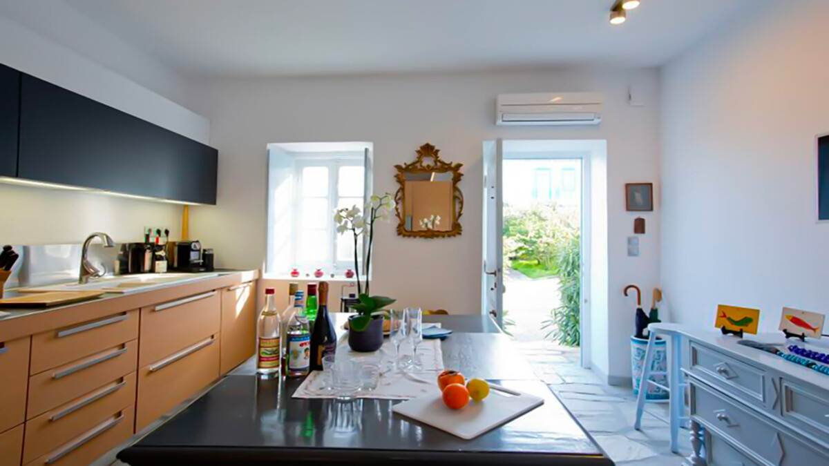 Le rez de chaussée accueille une salle de séjour avec cheminée ainsi qu’une cuisine américaine entièrement équipée.