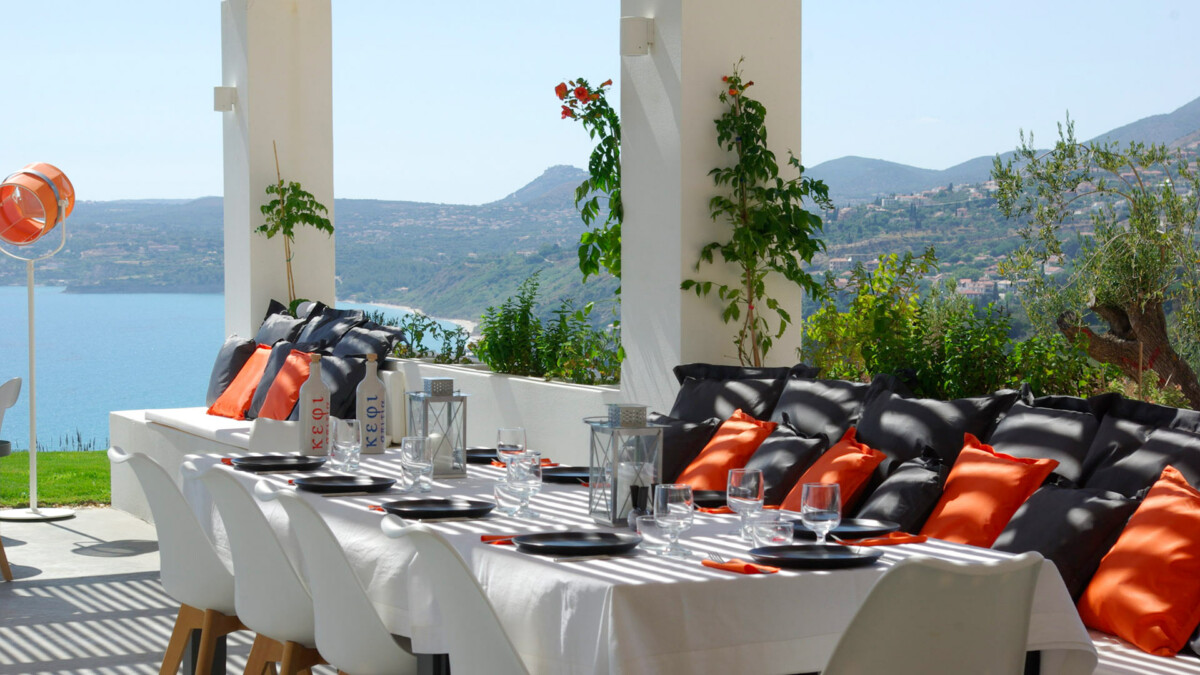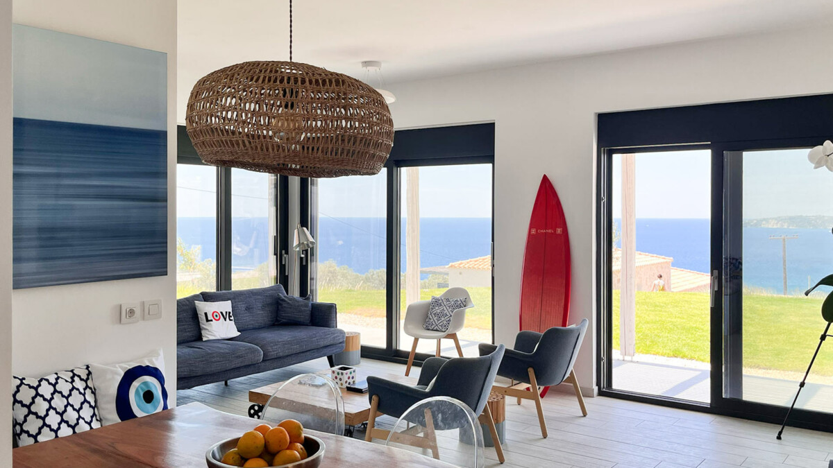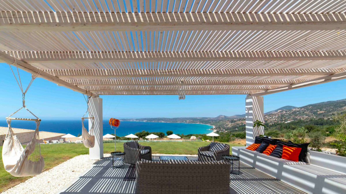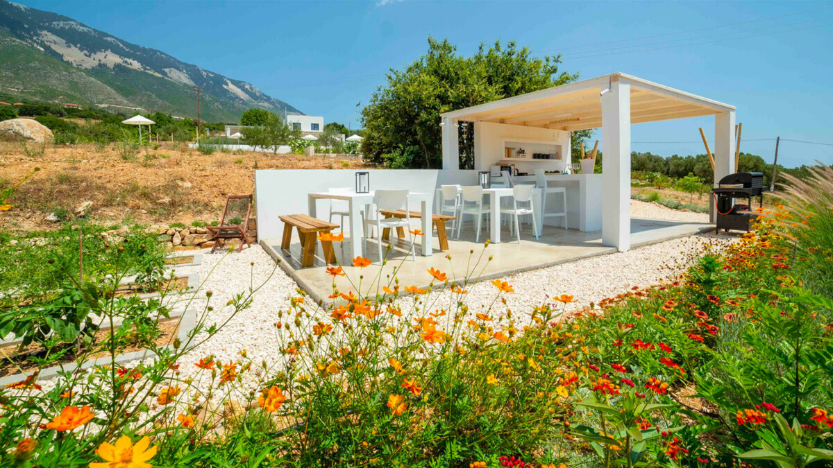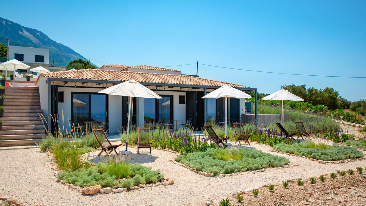 La villa Ilios, ouverte en juillet 2020, est située juste au-dessus de la baie de Lourdas, proche de la nature dans un environnement totalement privé, exclusif et paisible. Des centaines d’oliviers entourent la propriété. Située sur une colline, la maison offre à la fois une vue fantastique sur la mer et le mont Ainos. Cette maison mêle les styles contemporain, cycladique et kefalonien. Les détails ont été soigneusement étudiés et seuls des matériaux de haute qualité ont été choisis pour rendre chaque séjour confortable et douillet.