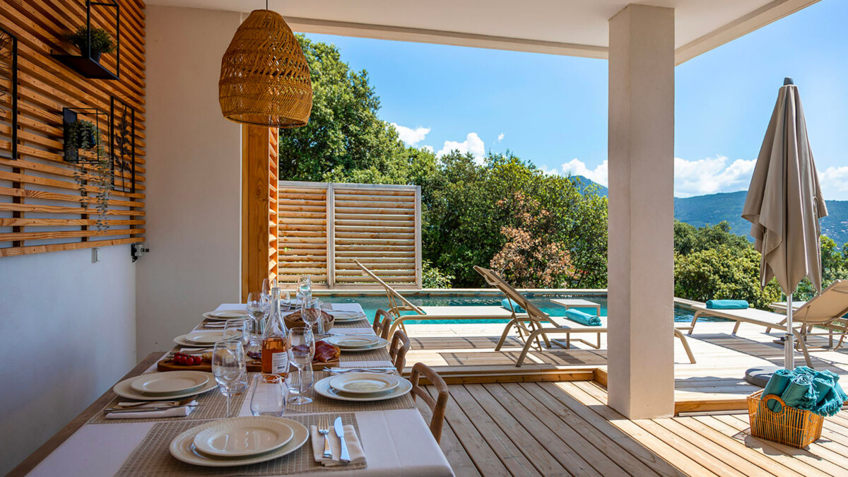 La villa est située à 1h/1h15 de voiture des aéroports d’Ajaccio et de Figari.
