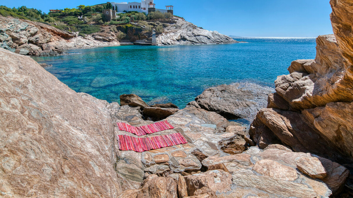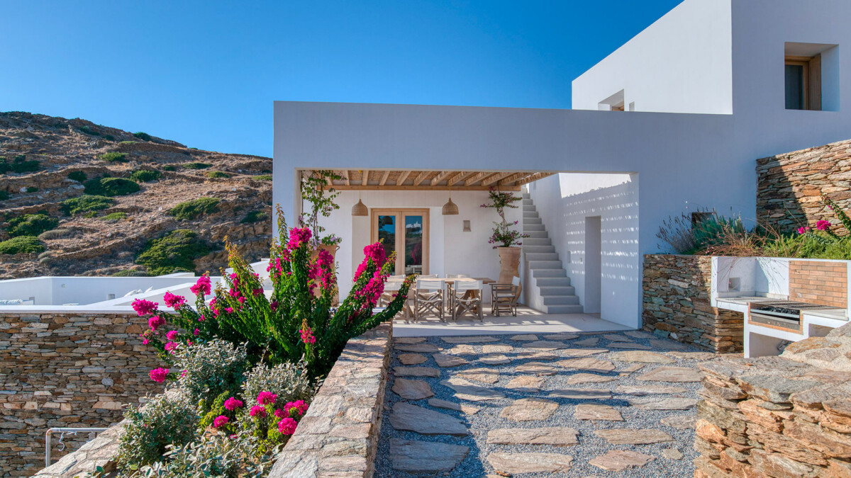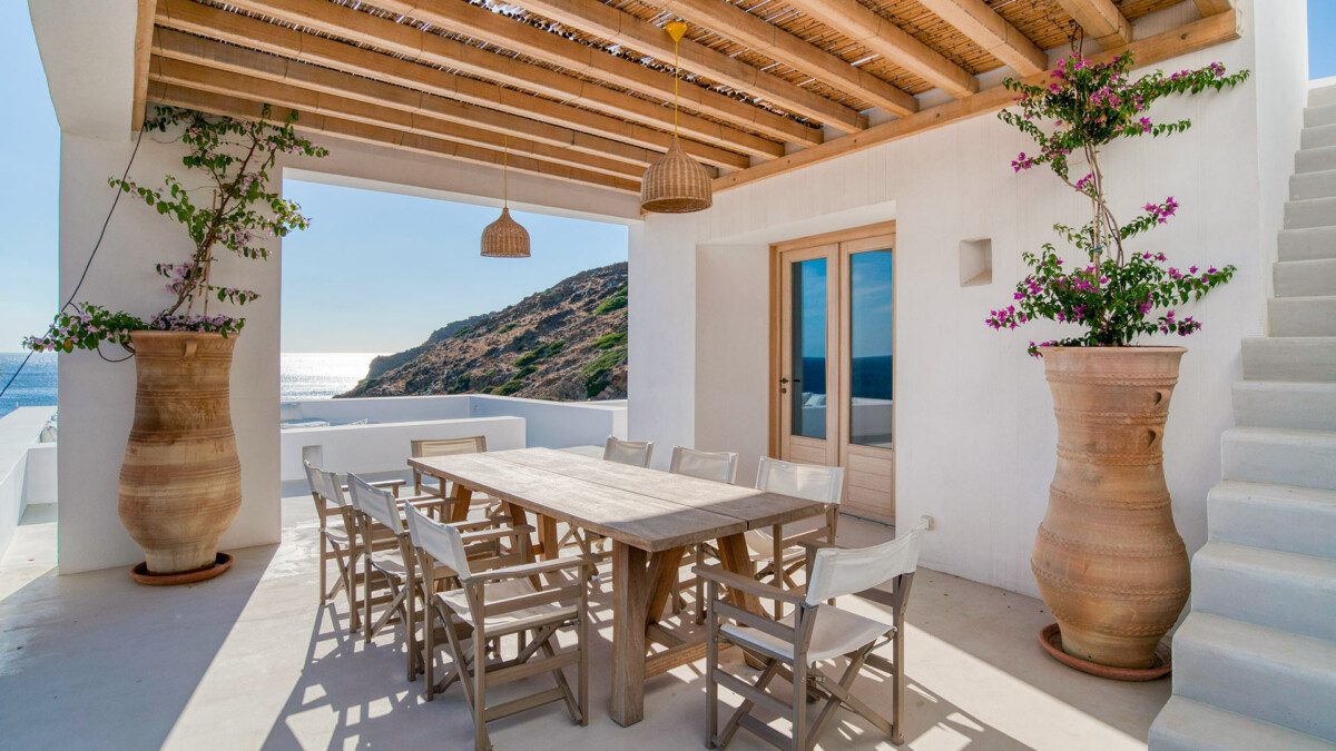 Les extérieurs de la maison sont conçus pour la détente et la contemplation. Profitez des nombreuses terrasses offrant des vues exceptionnelles sur la mer et les îles alentours, et des douches extérieures supplémentaires pour vous rafraîchir après une baignade dans la crique privée aux allures de piscine. Le jardin, arrosé par les eaux de pluie récupérées, ajoute une touche de verdure à ce cadre idyllique.