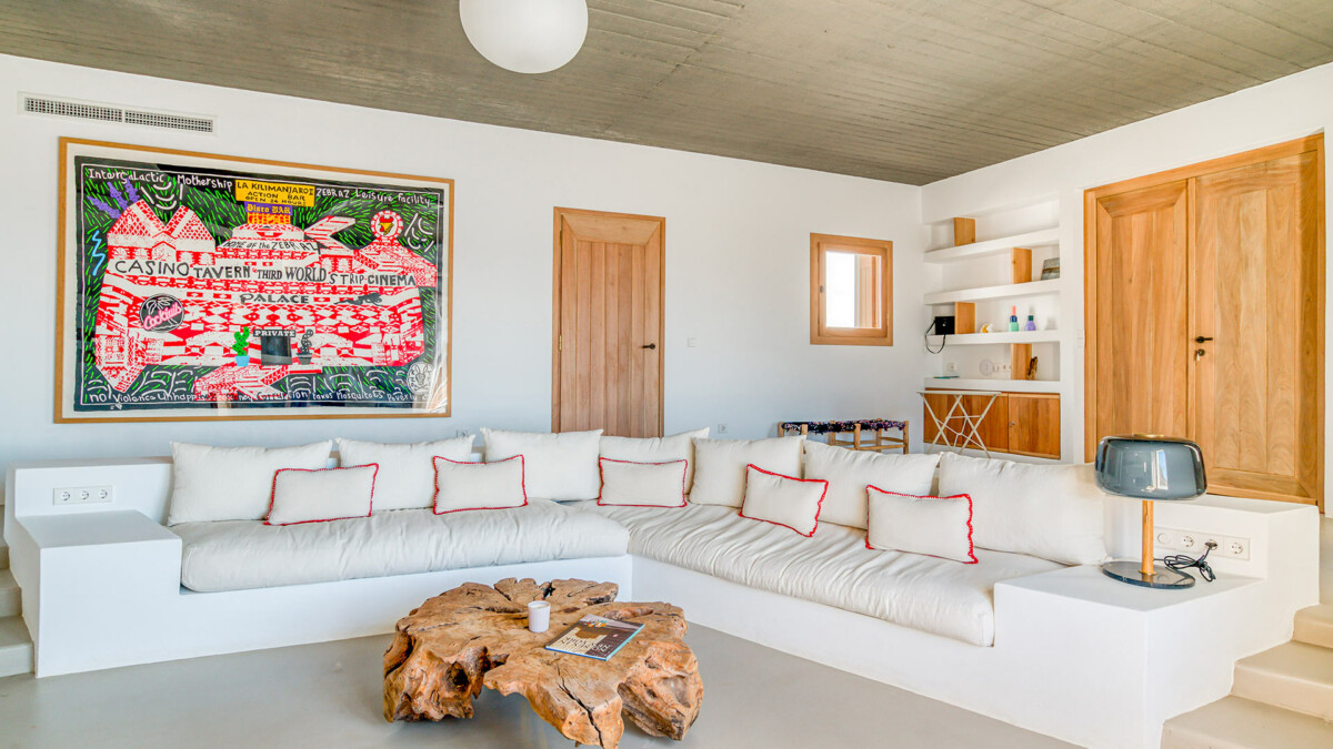 La maison a été pensée dans un style cycladique minimaliste, avec des espaces clairs, simples et lumineux. Les pièces communes sont spacieuses pour accueillir de grands groupes, et la cuisine entièrement équipée vous permettra de préparer de délicieux repas en famille ou entre amis. La décoration intérieure est sobre et élégante, mettant en valeur la beauté naturelle du paysage environnant.