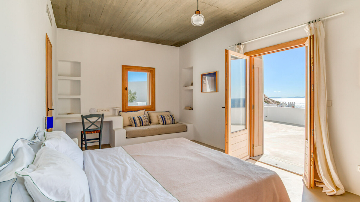 Cette maison d’exception se trouve sur l’île discrète d’Ios, entre Santorin et Naxos, à seulement 45 minutes de ferry de Santorin. Proche du village animé, accessible à pied, et sans voisins trop proches, elle offre le parfait équilibre entre tranquillité et divertissement. Profitez des nombreuses plages, restaurants, bars et activités nautiques de l’île, ainsi que des excursions en bateau et des balades aux monastères.